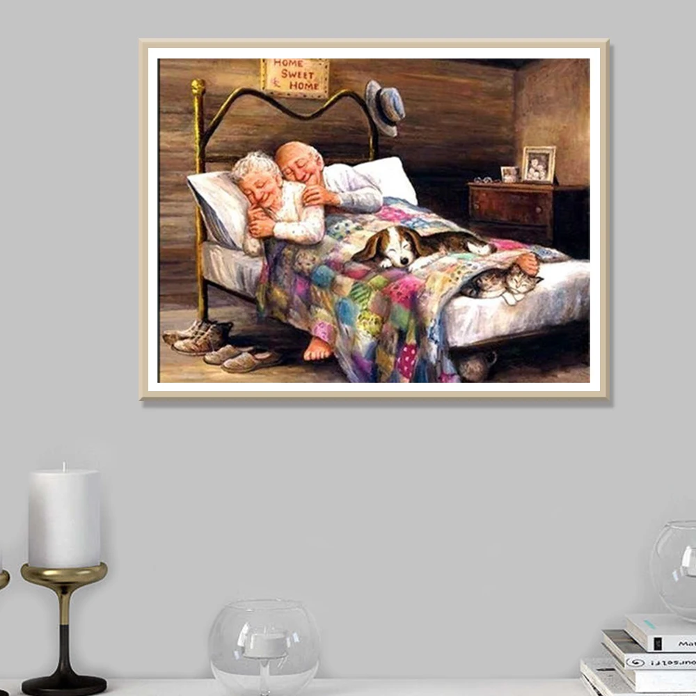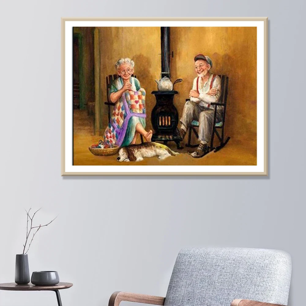 Картина 5D сделай сам из страз, старая пара, квадратная вышивка, мультяшная мозаика, картина для стразы, подарок, домашний декор