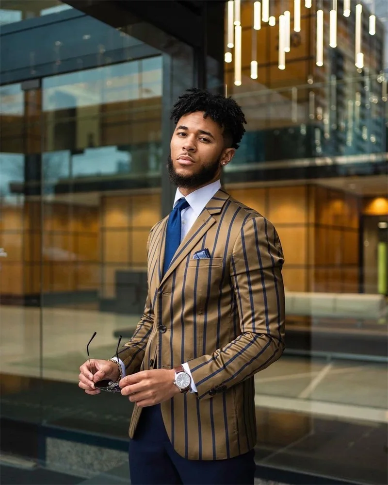 Свадебные костюмы из 3-х предметов в темно-синюю полоску, индивидуа...