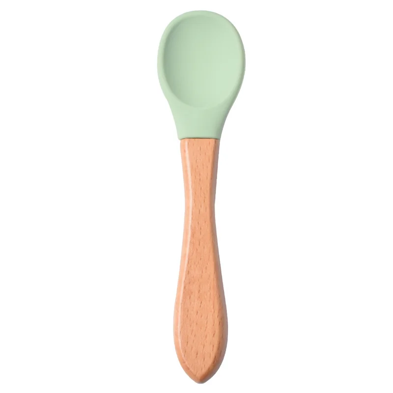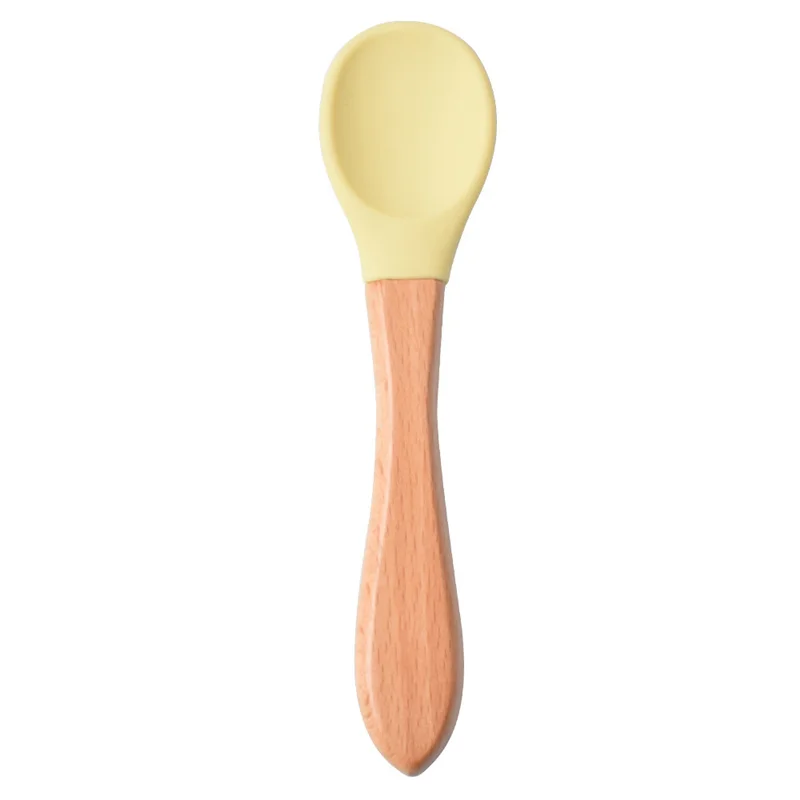 Ложка для самостоятельного кормления ребенка с силиконовой головкой и бамбуковой ручкой, Органическая ложка с мягким наконечником для малышей, научиться есть, подарки, бесплатная доставка