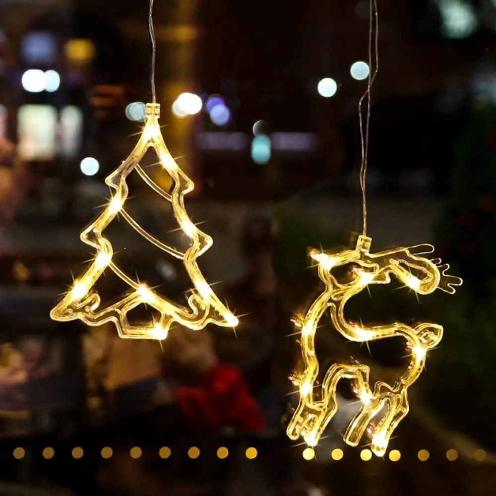 Светодиодный Рождественский светильник с питанием от аккумулятора, люстра с рождественской елкой, снеговиком, оленем, освещение для дома и улицы со стеклянным окошком на присоске