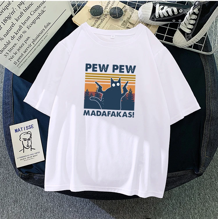 Женские футболки с принтом Pew Madafakas, топы с коротким рукавом, Новое поступление 2021, свободные повседневные женские футболки с графическим принтом, летняя футболка 2021
