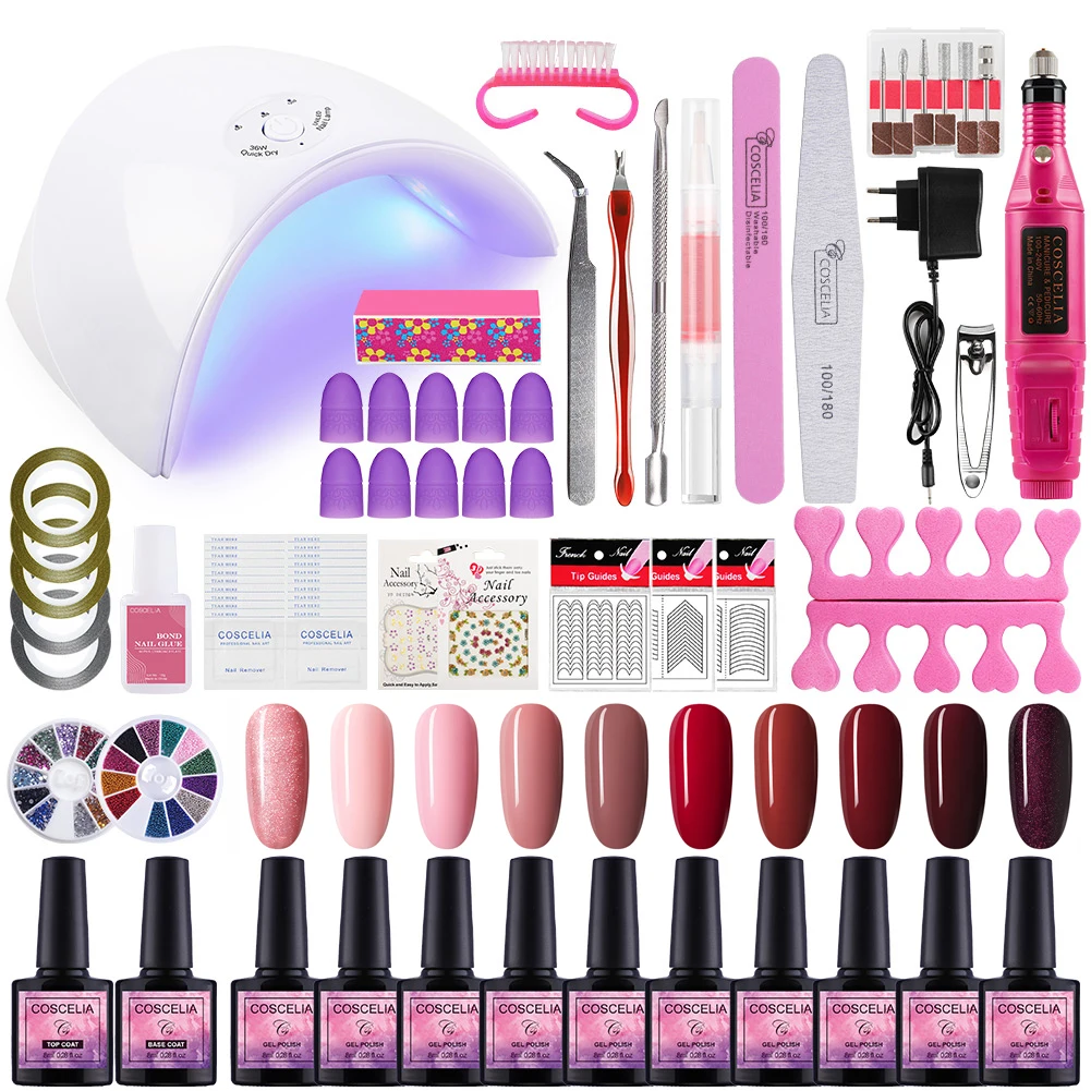 Набор для маникюра COSCELIA с верхней основой и светодиодной лампой