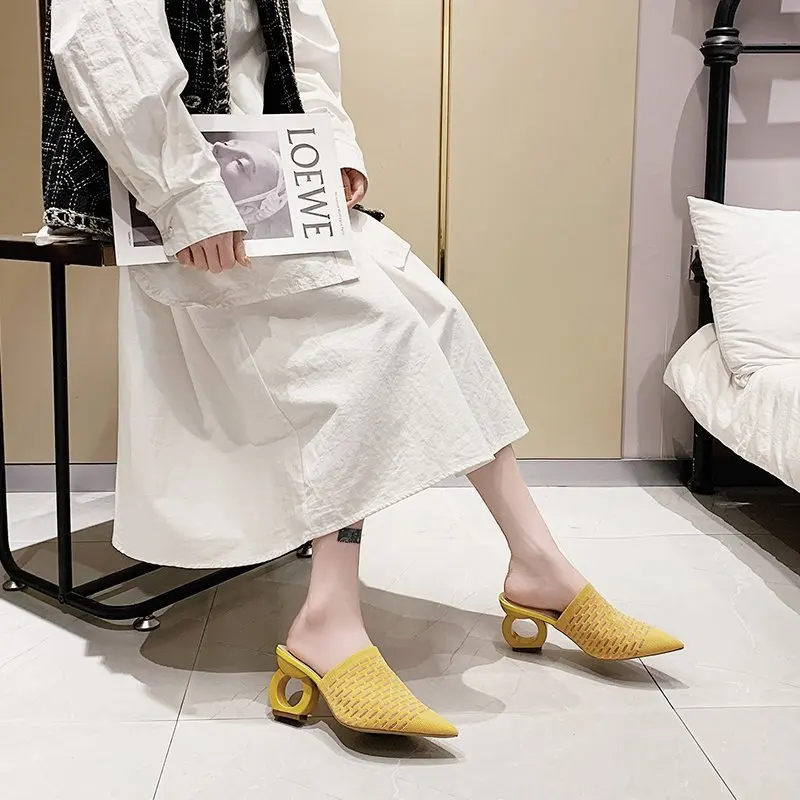 Женские шлепанцы из эластичной ткани, на каблуке 20217 см