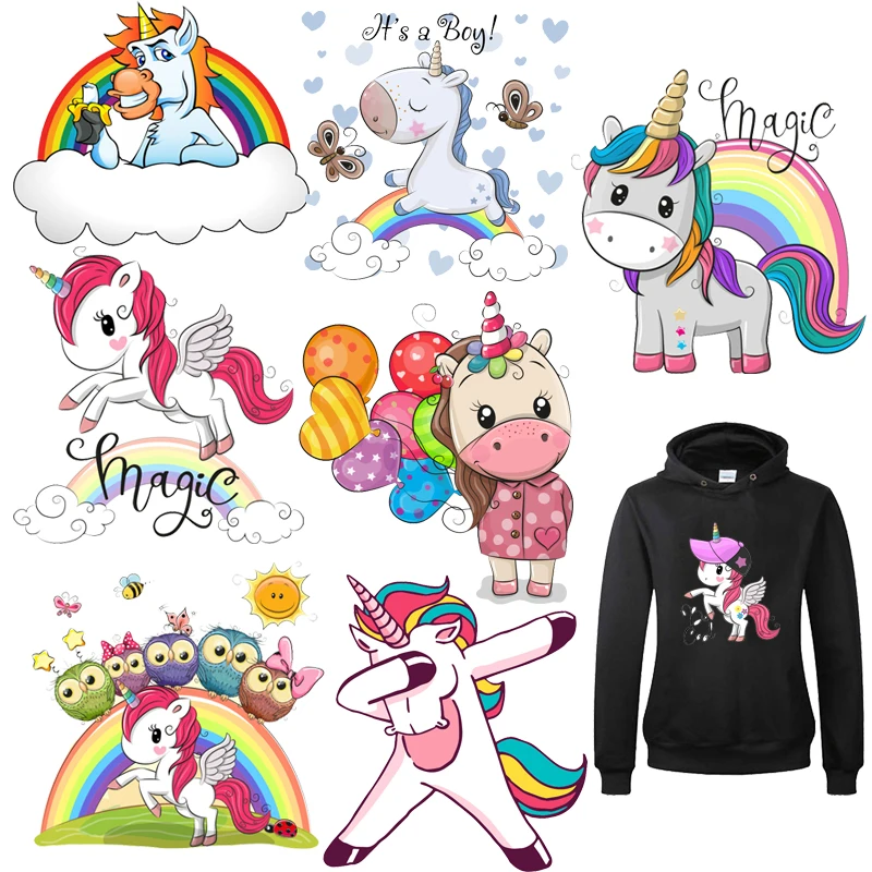 Термоклейкие нашивки для одежды, нашивка единорога наклейки на одежду, текстильные наклейки, радужные Мультяшные Аппликации, в полоску