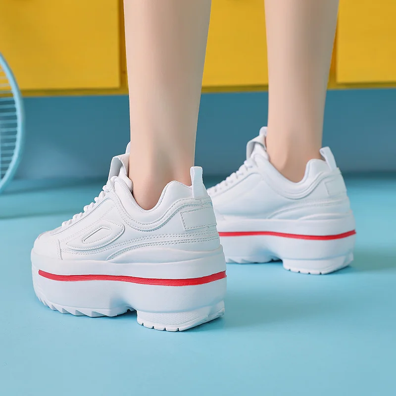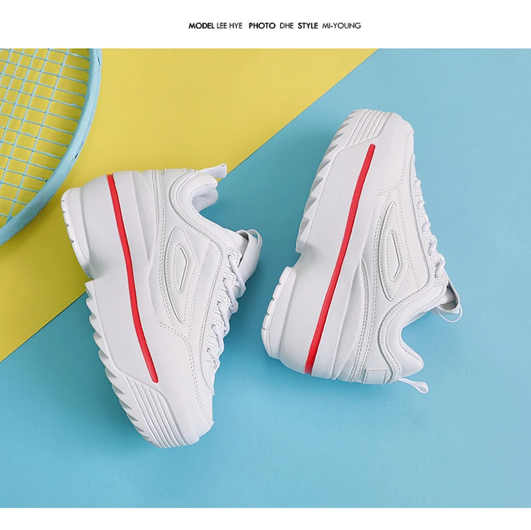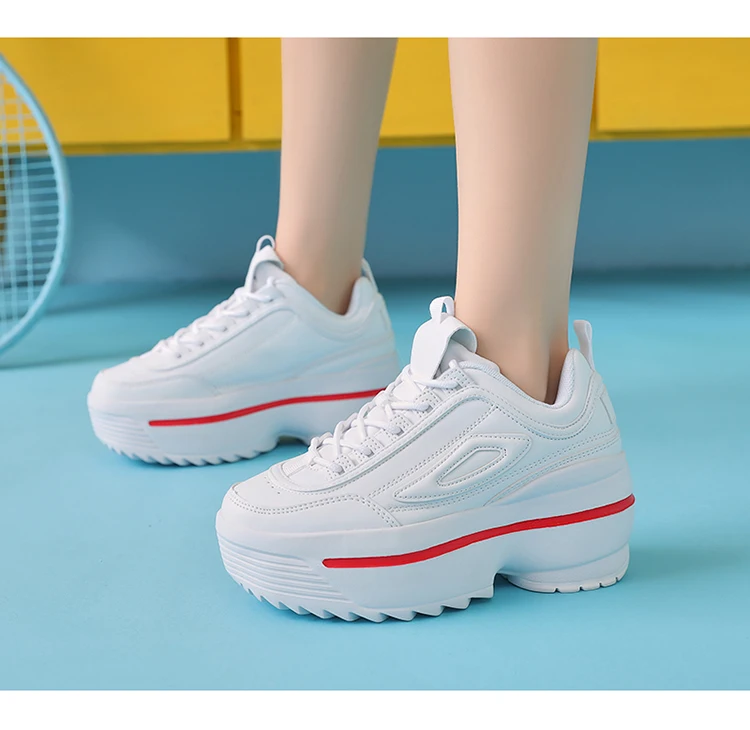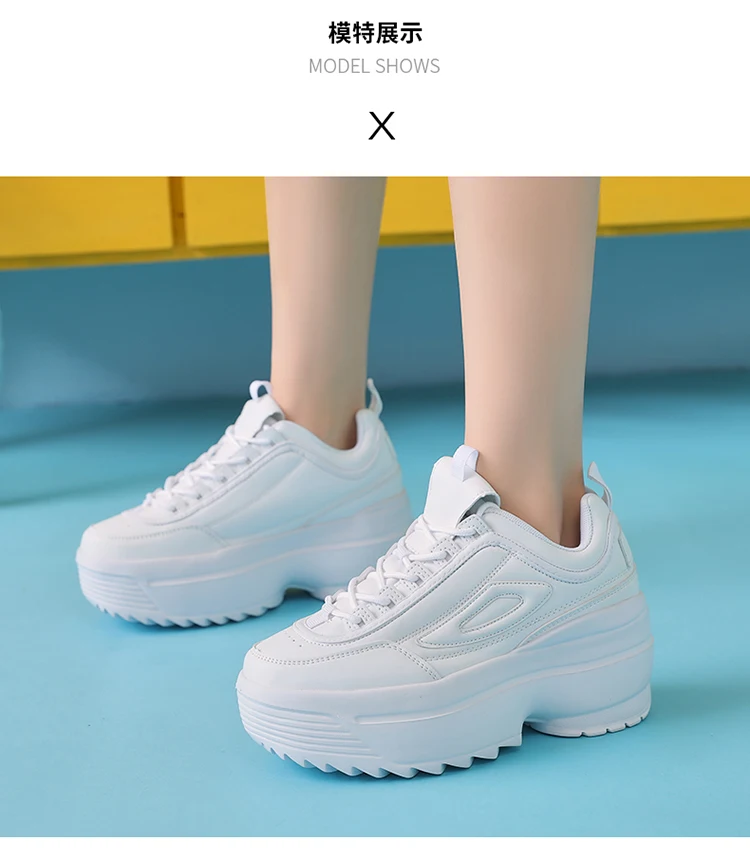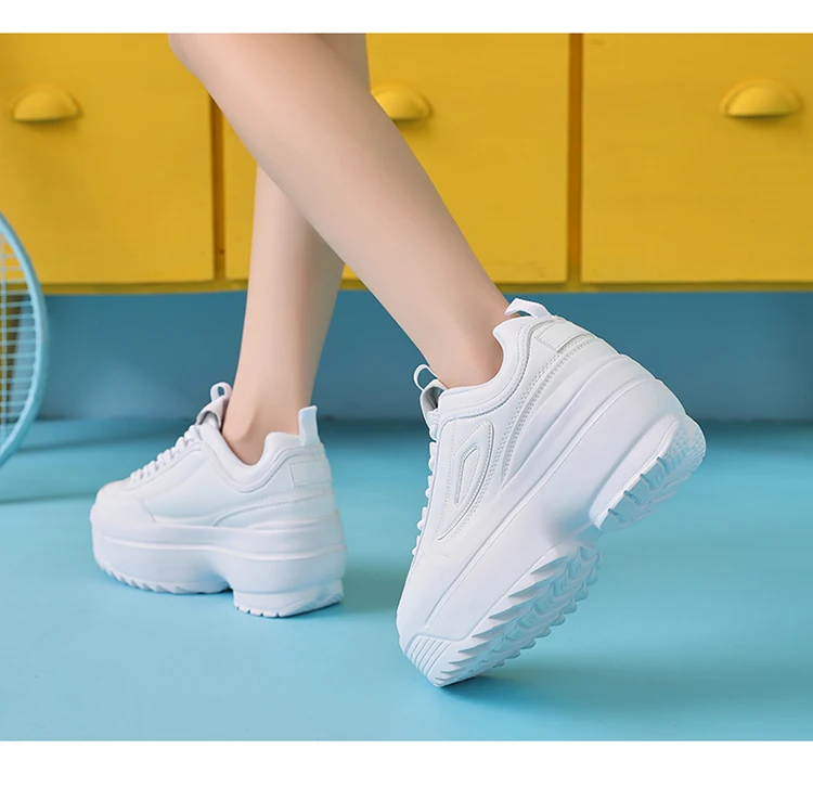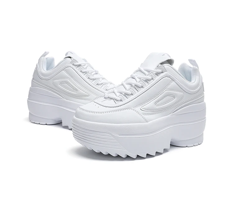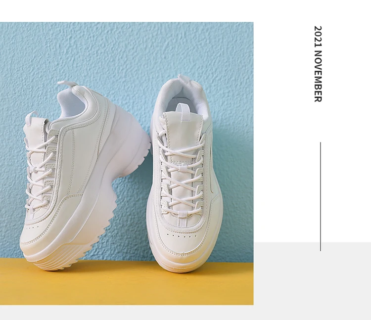 Женские массивные кроссовки на толстой платформе, Вулканизированная подошва, модная дышащая повседневная прогулочная обувь, белые