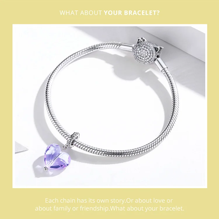 Bamoer Серебро Простой фиолетовый сердце очарование Кристалл Сказка любовь серебро 925 пробы подвеска для браслета ювелирные изделия SCC1816