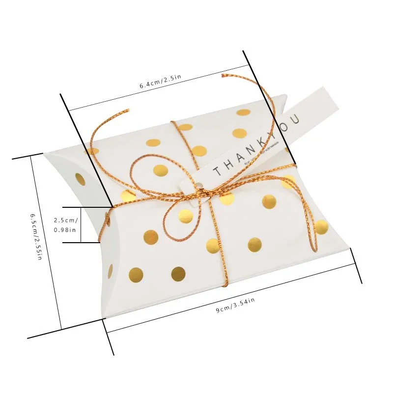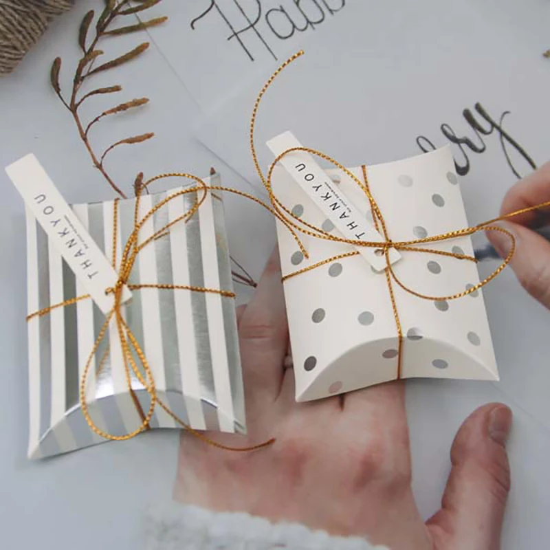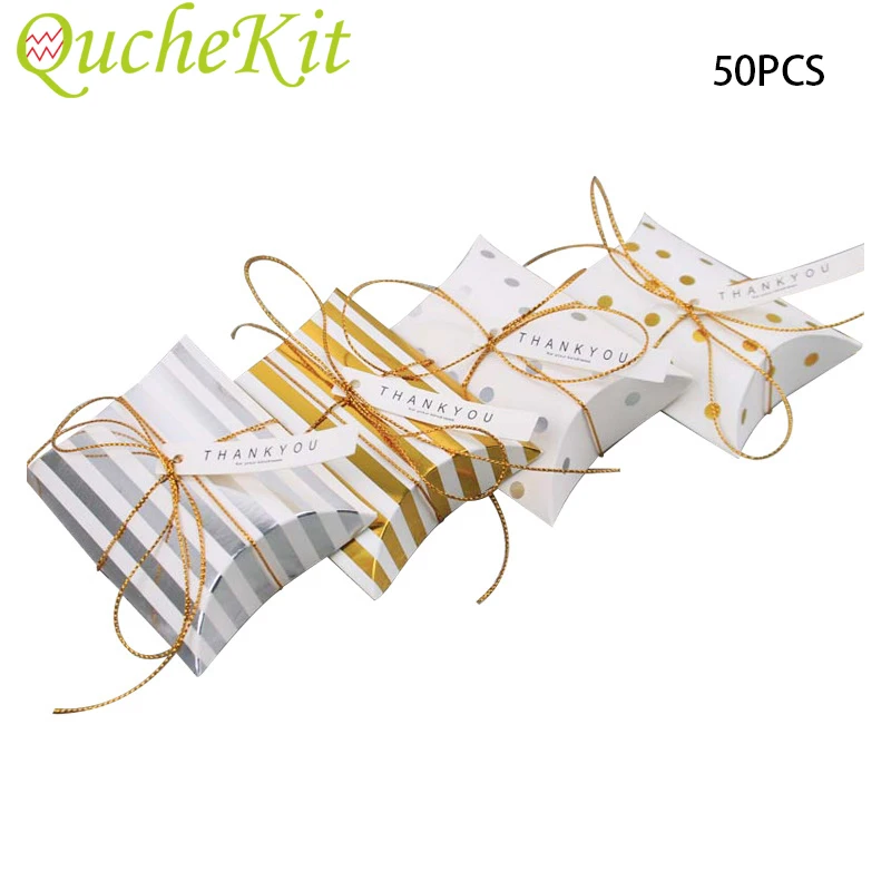 50 шт. коробка из крафт-бумаги для конфет белого золота с карточкой и веревкой в форме подушки кондитерский пирог ювелирные подарки Упаковочные пакеты товары для свадебной вечеринки