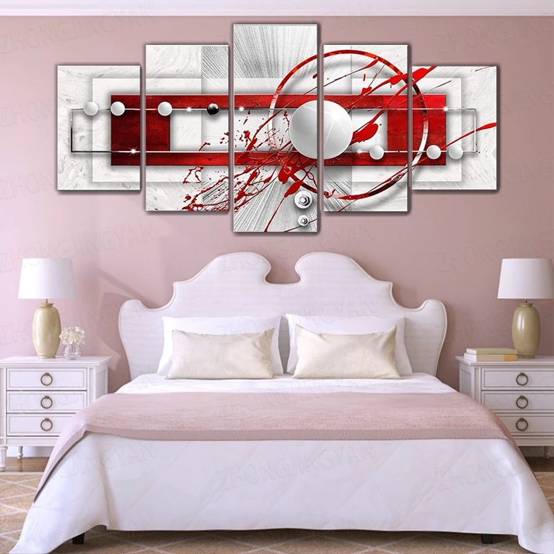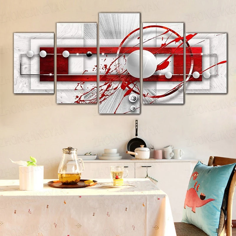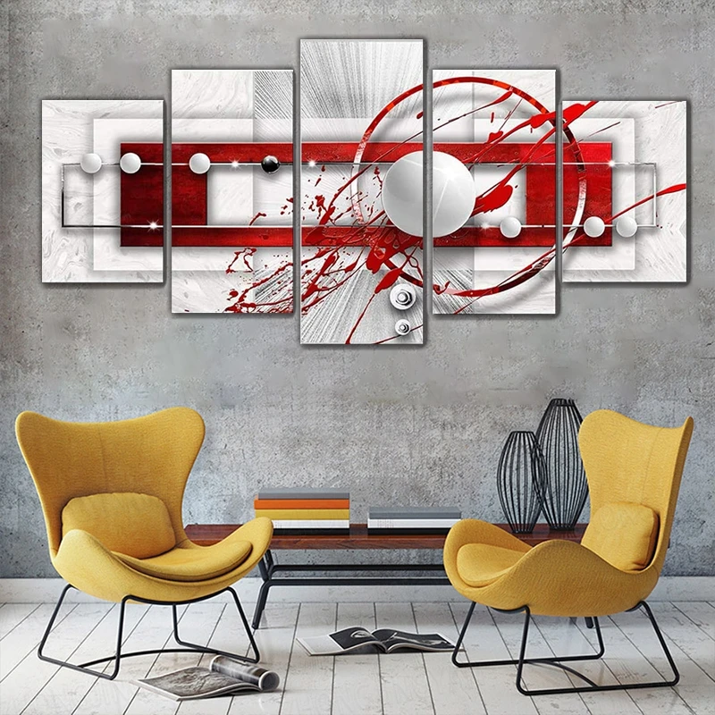Красно-белая картина в рамке 5 штук для декора ванной комнаты современный простой круглый шар акварель геометрический принт картина жикле