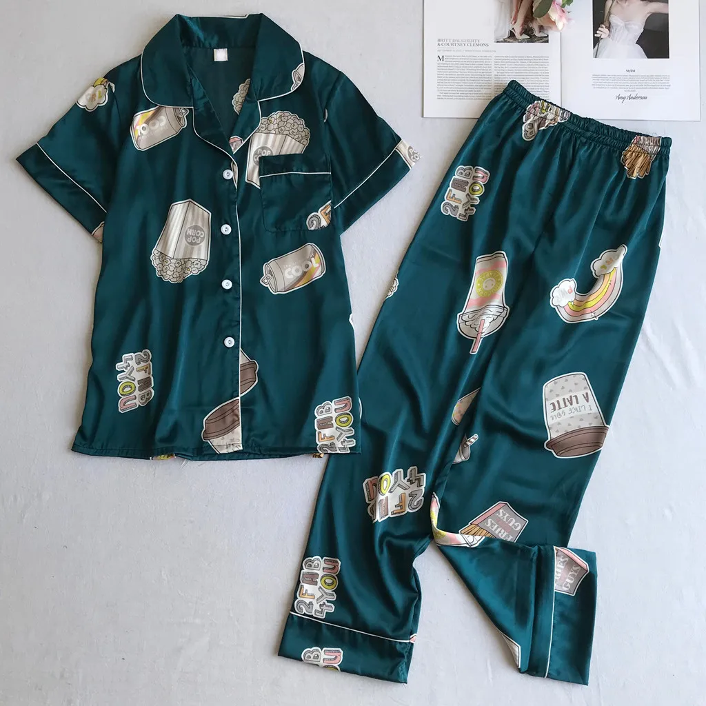 Шелковый пижамный комплект, одежда для сна, Женская пижама с коротким рукавом, ночная рубашка, сексуальное нижнее белье, шелковая атласная пижама, Пижамный костюм, 2 шт.3 шт.#4