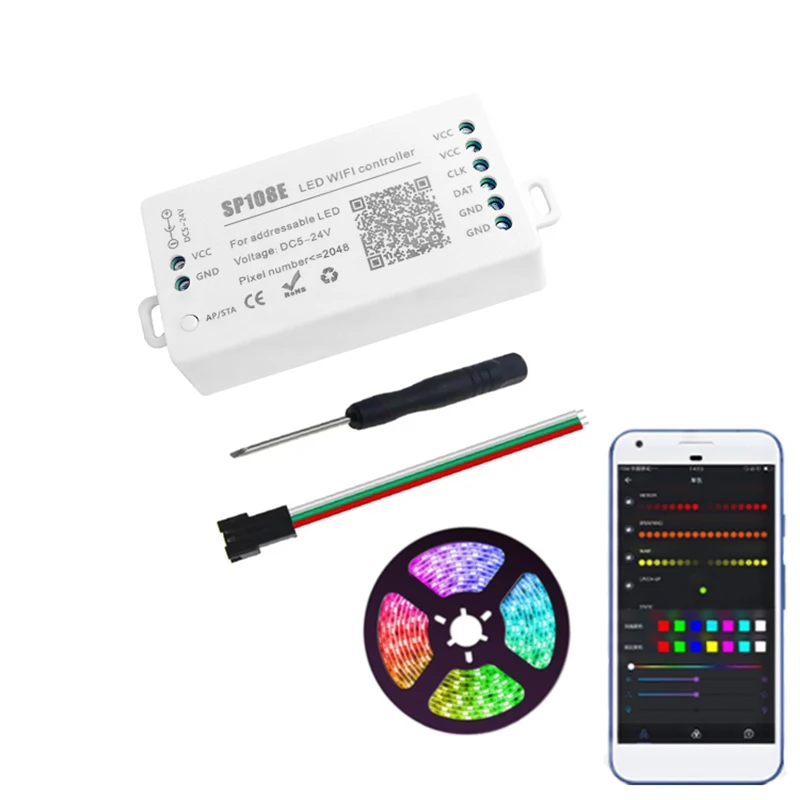 Контроллер Wi-Fi SP108E WS2811, WS2812B, WS2813, WS2815, SK6812 и т. д., Светодиодная лента, светодиодный модуль, умное приложение, беспроводной контроллер DC5-24V