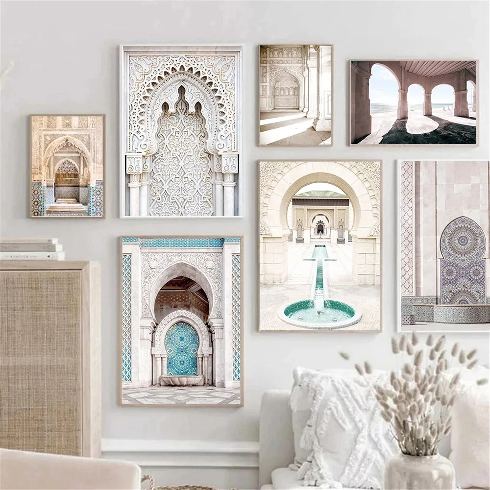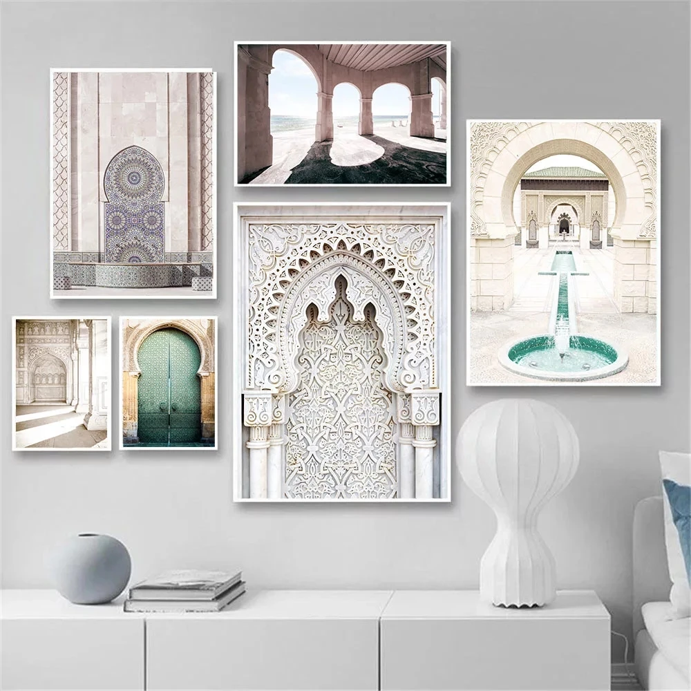 Современные исламские принты, марокканская дверь, настенный плакат, мечеть, холст, живопись, Арабская архитектура, настенные картины, декор для гостиной