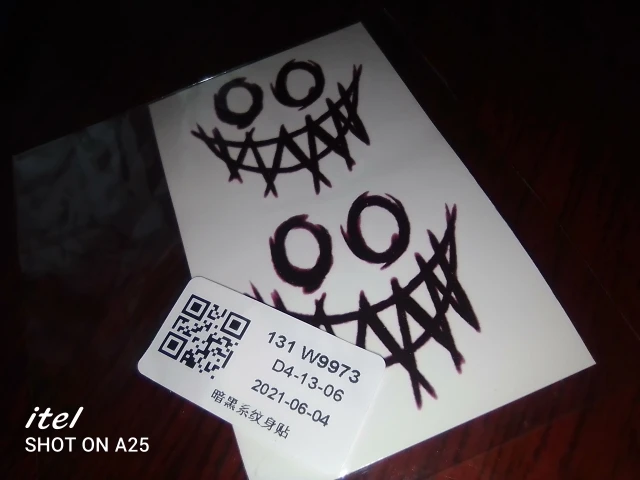 товар пришел, точно такой же, как на картинке, только формат а5, держится уже 3 сутки, даже под водой не стирается. выглядит реалистично, советую!!