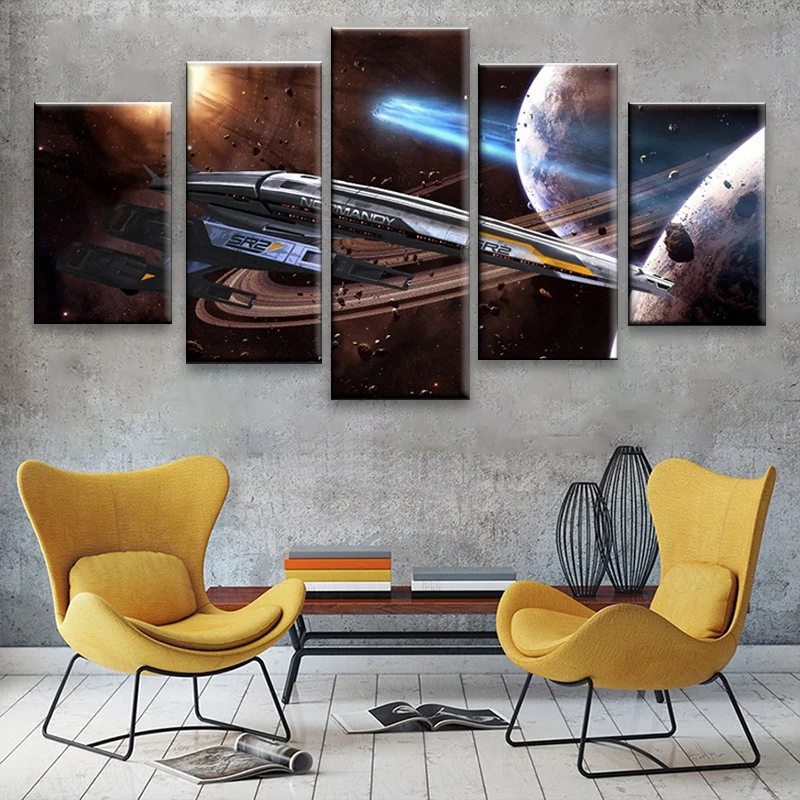 Современная декоративная Спальня стены 5 шт. большой Mass Effect Нормандии SR-2 игры постер высокое качество Печать на холсте Модульная картина