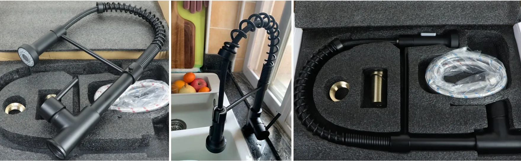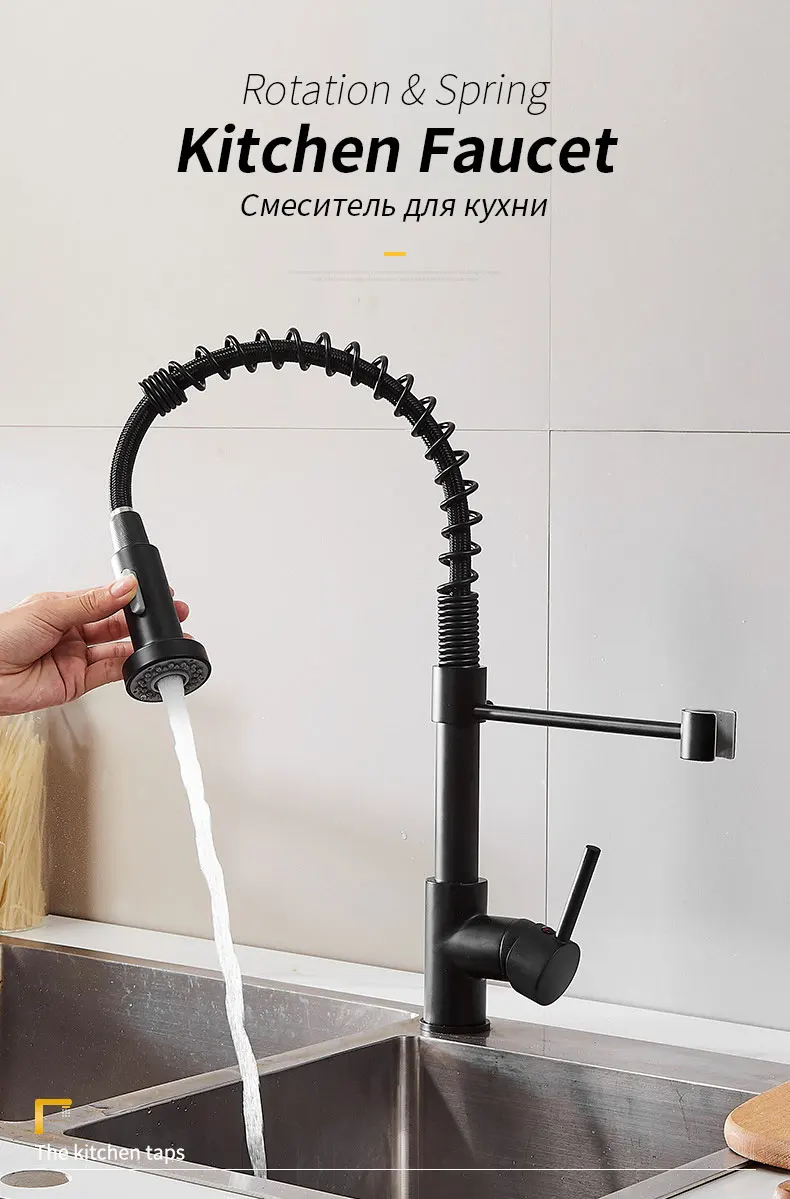 Смеситель кухонный с поворотом на 360 градусов, черного цвета