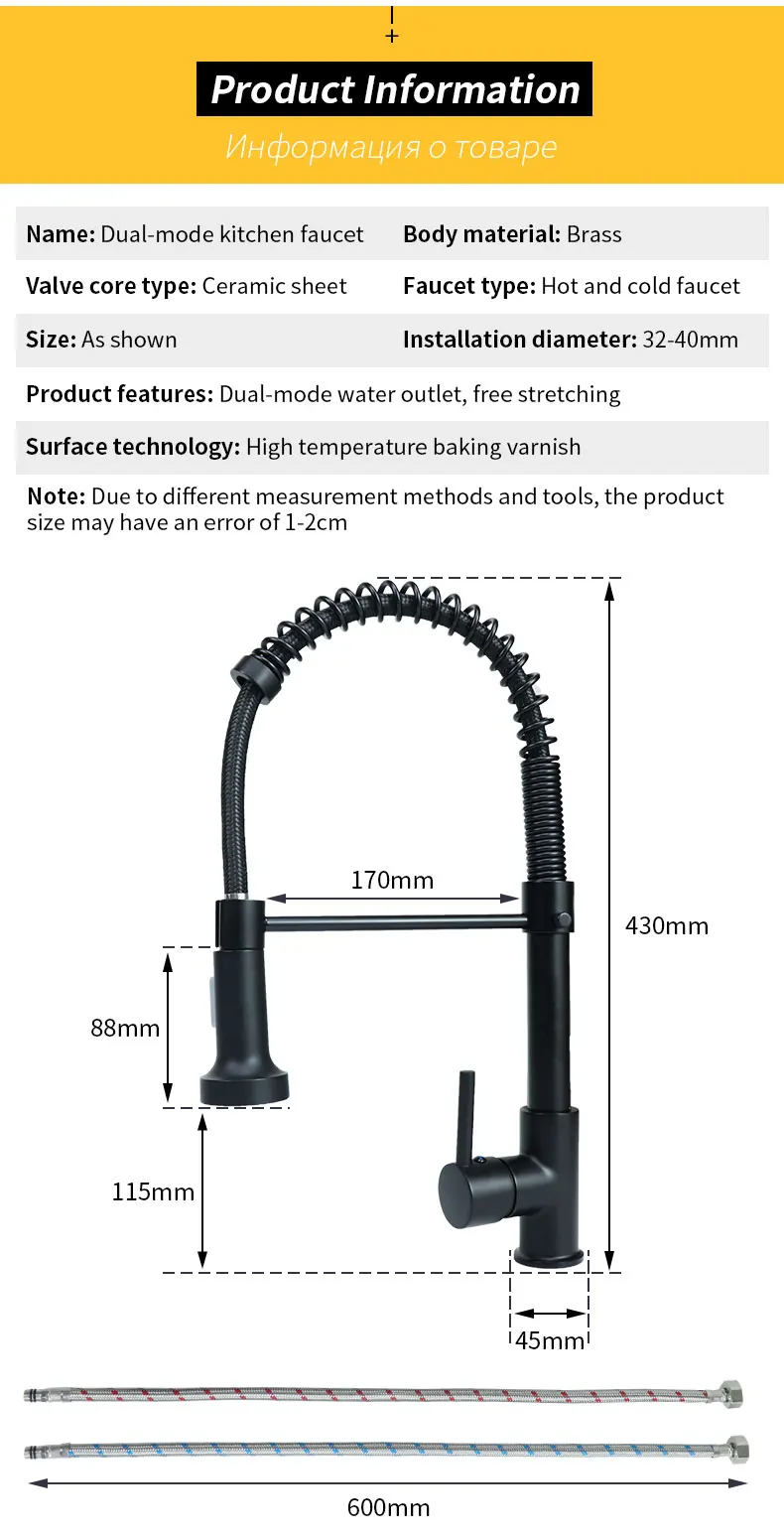 Характеристики продукта: двухрежимный выход для воды, свободное растяжение