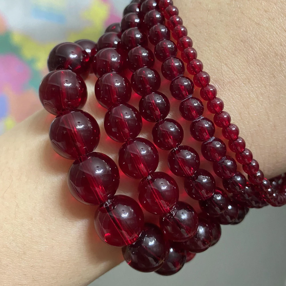Гранат красный стекло, кристалл, Камень круглые свободные бусины для браслетов Изготовление ювелирных изделий Diy аксессуары ручной работы 4-12 мм 15"