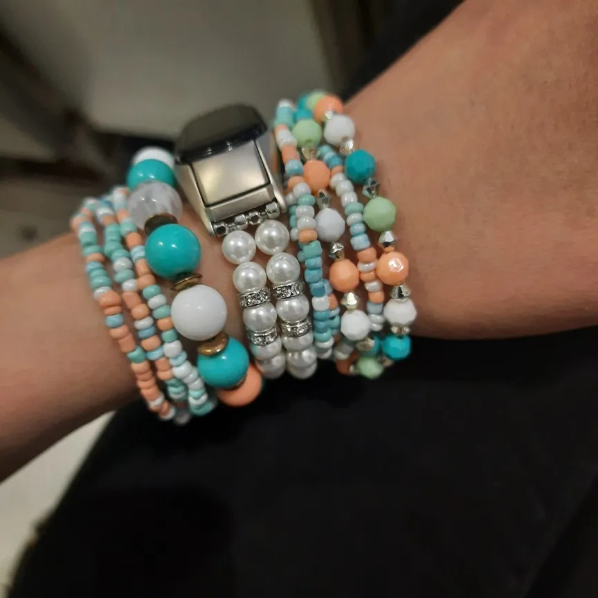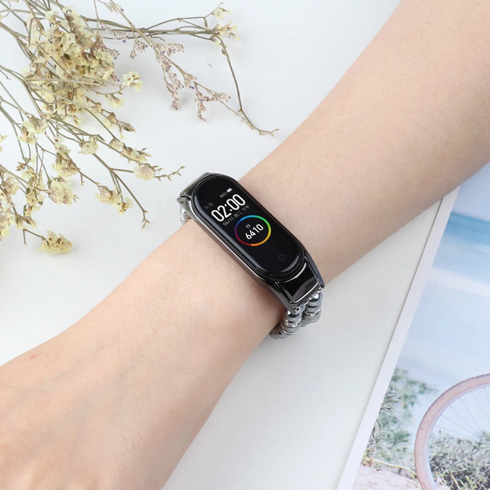 Браслет Miband 5 Mi6, браслет с бусинами, женский ремешок для Xiaomi Mi Band 6 5 4 3, ремешок для часов, ювелирные изделия, эластичный пояс для Miband 6 Correa