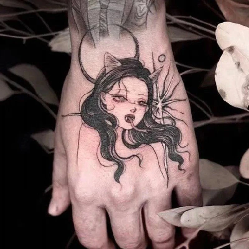 Темная роза любовь клоун ведьма Changle палец квадратные татуировки...