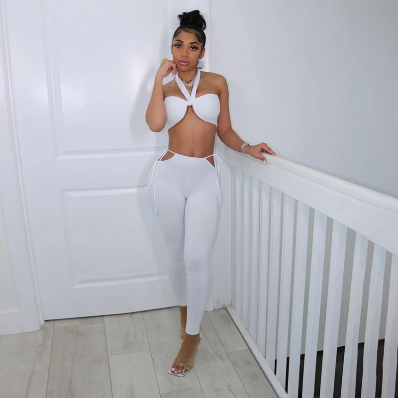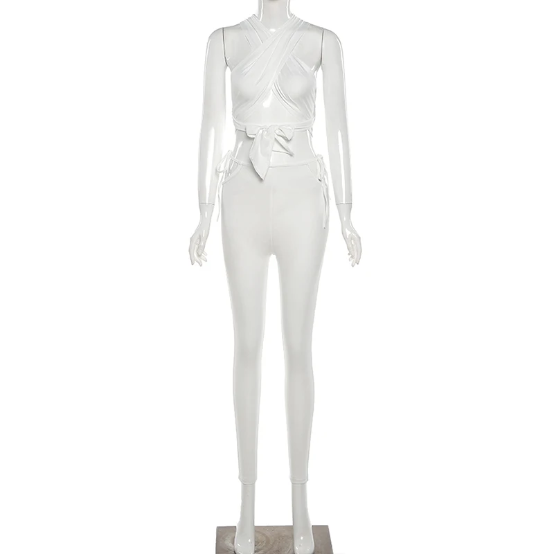 Накрест, накрест, облегающий, в комплекте с набором подходящих сумочек летние 2021 клубный кроп-топ и брюки; Комплект одежды pjamas для Для женщин Ruched пикантная обувь наряды