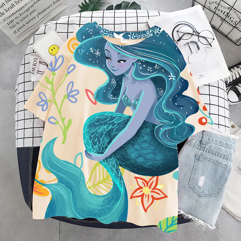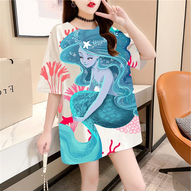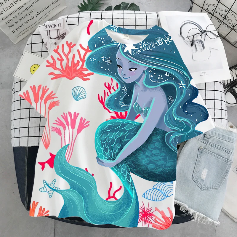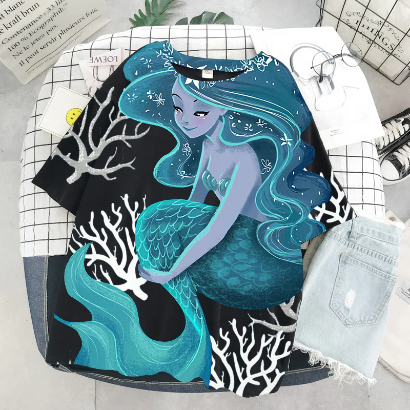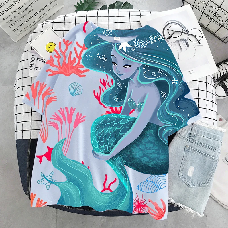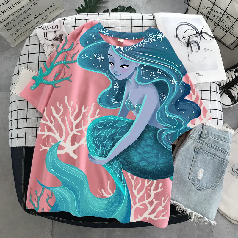 Женская футболка с 3D-принтом Русалочки Ариэль, Повседневная летняя...
