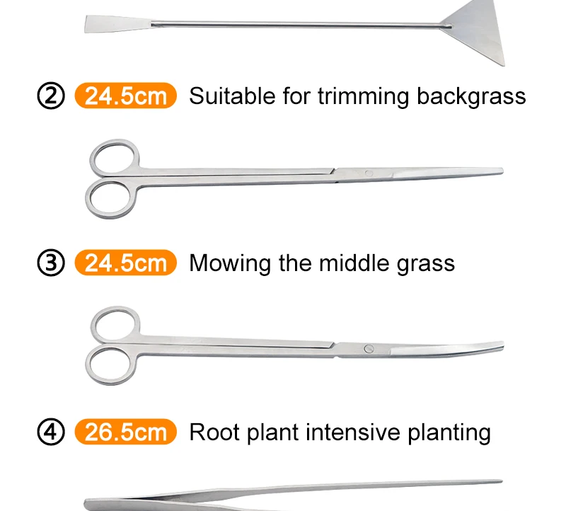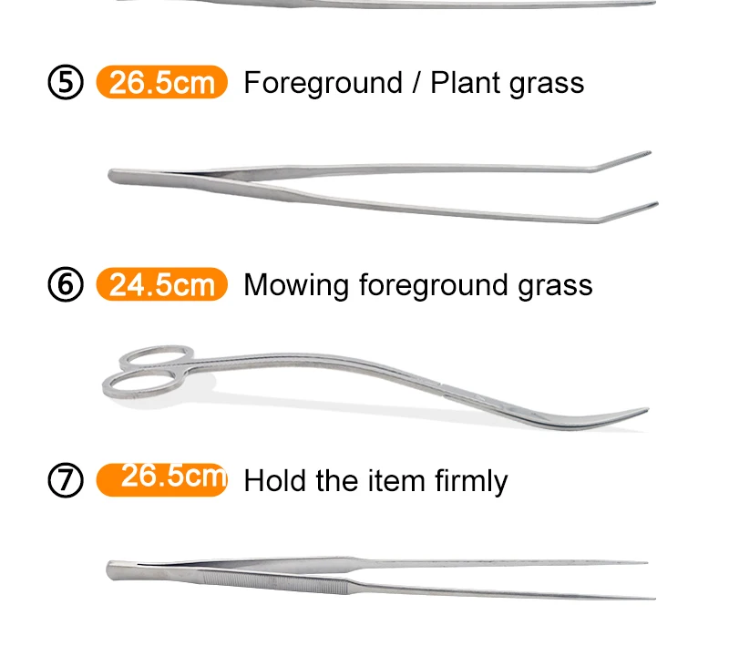 Инструменты для аквариума пинцет и ножницы набор растения Трава нержавеющая сталь чистящие инструменты растения аксессуары для аквариума 4 5 6 шт./компл.Описание товараМатериал: нержавеющая стальРазмер:Удаление водорослей (1): 31,5 см;Прямые Ножницы (2): 24,5 см;Изгиб ножницы (3): 24,5 см;Прямой пинцет (4): 26,5 см;Изогнутые пинцеты (5): 26,5 см;Волновые ножницы (6): 24,4 смОстрый Пинцет (7): 26,5 см ПараметрыПосылка A1 включает: 1,2,3,4,5;Посылка A2 включает: 1,2,3,4,5,6;Посылка A3 включает: 1,2,3,4,5,7;А4 (черный) посылка включает: 1,2,3,4,5,6;Посылка A5 включает в себя: сумка для хранения 6 слотов для карт (это только сумка для хранения, без инструментов);Посылка A6 включает: 1,2,3,4; Особенности 1. Изделия изготовлены из высококачественной нержавеющей стали с отличной гибкостью и стойкостью к ржавчине.2. Легко и удобно использовать.3. Нежные клипсы и очень тонкий дизайн идеально подходят для планирования крошечных водных растений.4. Позволяет управлять с точностью и деликатностью даже с самых маленьких и деликатных водных растений5. Специальная конструкция для посадки водных растений в труднодоступных местах.6. Комплект поставляется с сумкой для хранения инструментов.Подходит для резки аквариумных растений.Лезвие sharp. Будьте осторожны при использовании, чтобы избежать прямого повреждения кожи. Держите его в недоступном для детей месте. Примечание:1. Из-за ручного измерения допускается погрешность в 1-2 мм, пожалуйста, не обращайте внимания перед подачей заявки.
