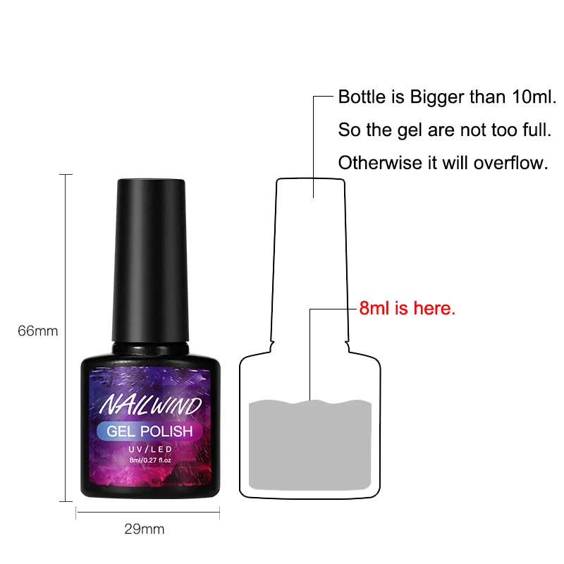 Характеристики изделия: Название бренда: NAILWIND Название: Радужный гель Объем: 8 мл Цвет: 30 цвет s Отверждение: УФ/Светодиодная лампа Мы уверены, что наш Гель-лак лучшего качества на Aliexpress. -Качество-наш первый приоритет. -Светильник, почти без запаха (только верхнее покрытие и тональный крем имеют умеренный запах), мы наносим только органическую текстуру для защиты вашего здоровья. -Цвет сохранит блеск до 30 дней. -Горячие цвета на выбор, подходят на все случаи жизни. Шаг за шагом: -1. Придайте форму ногтю. Слегка смочите поверхность ногтевой пластины. Дезинфицировать. -2. Нанесите Базовое покрытие тонального крема от кутикулы до свободного края (не забудьте запечатать край ногтя). Засушите ногти под светодиодный светильник кой в течение 10 секунд или УФ светильник в течение 2 минут. -3. Нанесите тонким слоем отмачиваемого гель-лака цвета на выбор. Шапка свободный край. Лечение: 30 секунд светодиодный-лампе, или 2 минуты в UV-лампе. -4. Повторите 2-е тонкое покрытие отмачиваемого гель-лака к ногтям. Отверждайте под светодиодный Ной лампой 30 секунд или УФ светильник Том 2 минуты. -5. Нанесите верхнее покрытие. Шапка свободный край. Отверждение: 30 секунд светодиодный-лампе. -6. Удалите липкие остатки на ногтях с помощью очищающего средства. Затем нанесите Масло для кутикулы nourish, чтобы регидратировать влагу в кутикулу и кожу, окружающую ноготь. Для удаления: -1. Смочите ногти в средство для удаления акрила около 5 минут. -2. Аккуратно Оторвите весь кусок ногтевой эмали на каждом ногте. Внимание: 1. Объем 8 мл. Поскольку емкость флакона больше 8 мл, гель для ногтей не будет полностью заполнен флаконом! 2. Держать плотно запечатанным. Хранить вдали от солнечных лучей. Хранить в недоступном для детей месте.