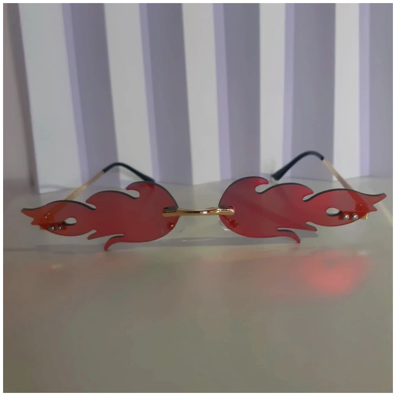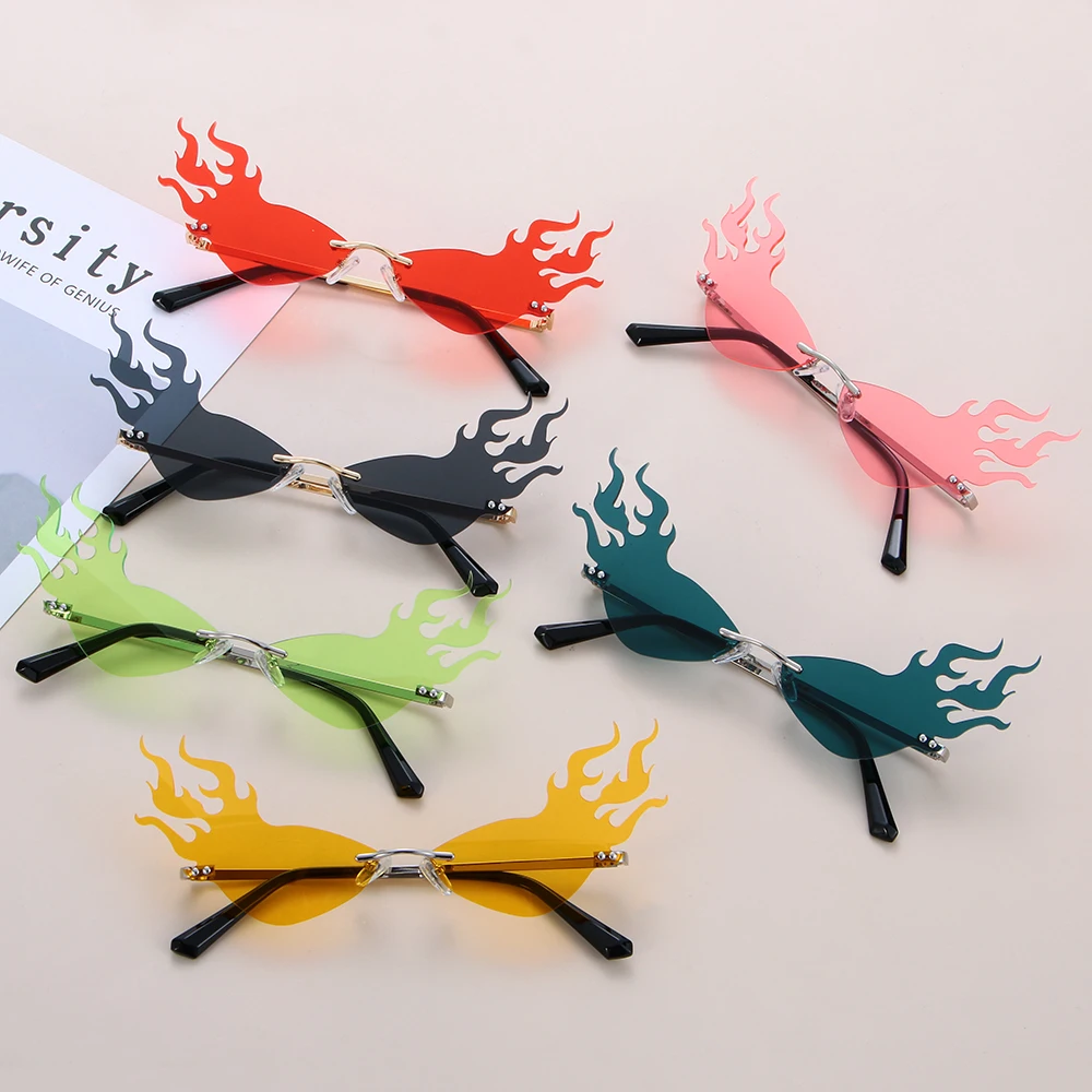 Крутые Модные солнцезащитные очки Fire Flame, трендовые солнцезащитные очки UV 400 для женщин и мужчин, без оправы, узкие солнцезащитные очки, волнистые велосипедные солнцезащитные очки, уличная одежда