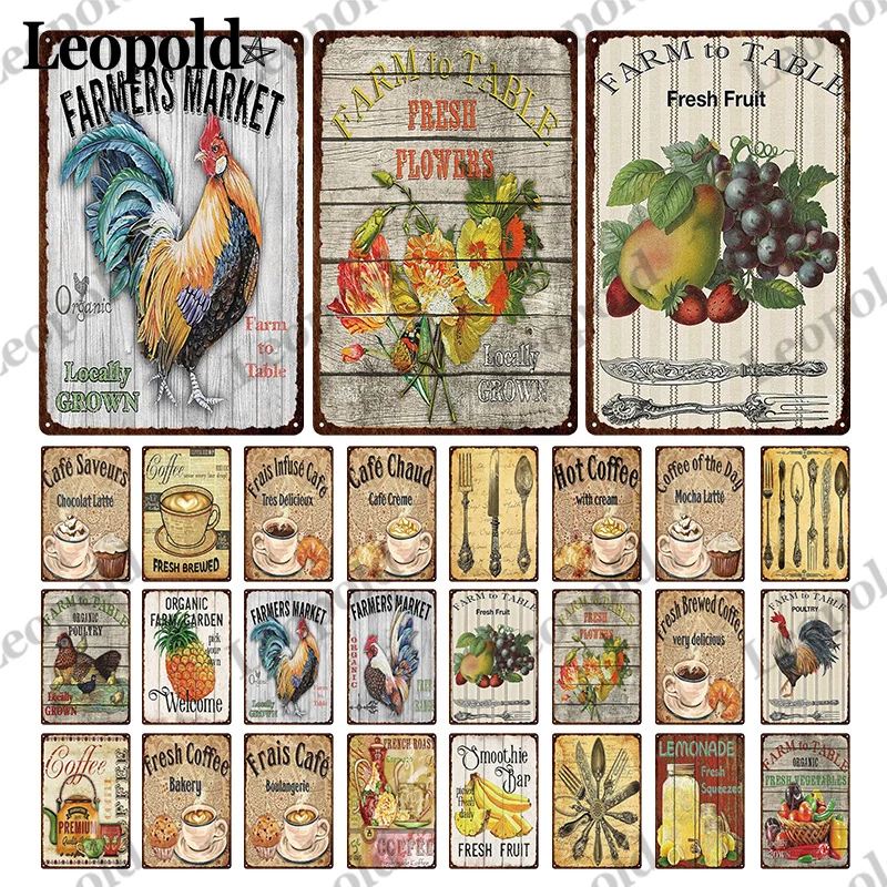Винтажный металлический плакат для кофе, нож и вилка для еды, этикетка для курицы, металлический плакат, настенный художественный аксессуар для бара, кухни, домашнего декора