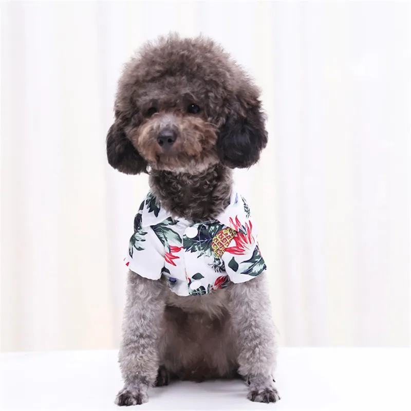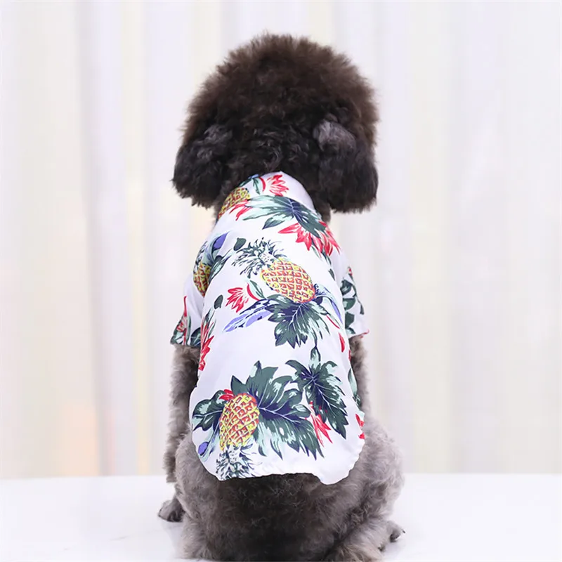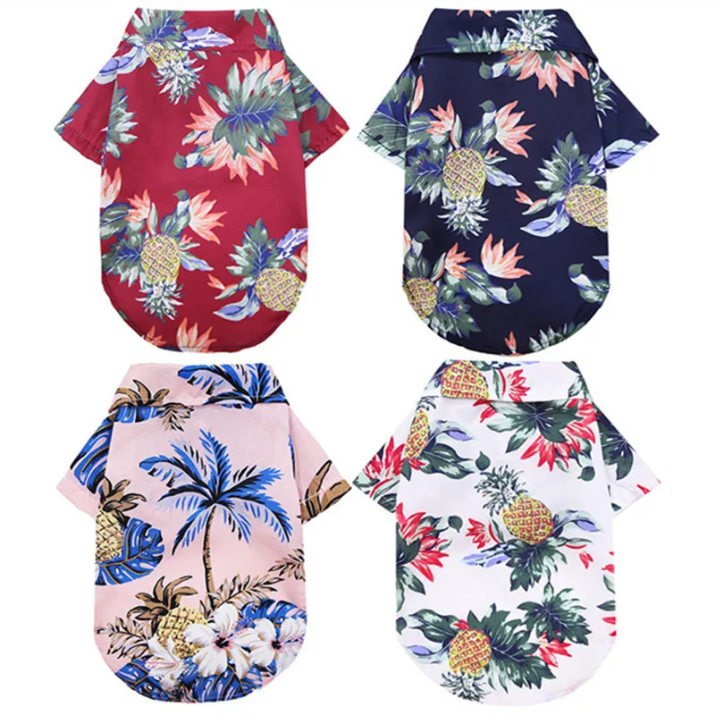 Одежда для собак летняя пляжная рубашка с милым принтом собаки Гавайская пляжная Повседневная рубашка туристическая с цветочным рисунком ананаса с коротким рукавом блуза с принтом кошки