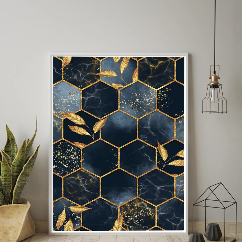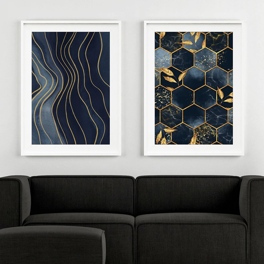 Абстрактная картина из золотой фольги, синий плакат, Современная Зо...