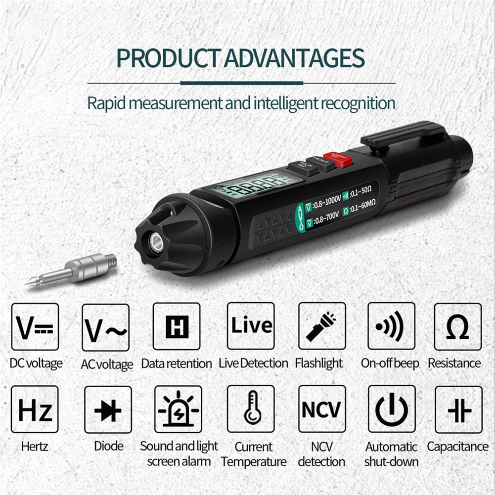 6000 штук-это карманный 3 5/6 цифр, истинное эффективное значение, умный мультиметр в форме ручки, нет необходимости поворачивать циферблат, чтобы выбрать функцию.
