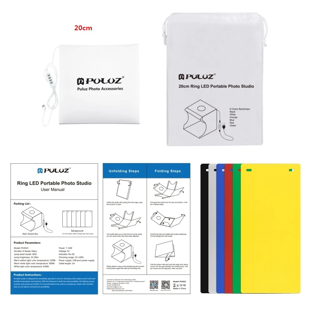 PULUZ 20 см складной светильник коробка Настольный съемки софтбокс мини studio с защитой от повреждений и кольцом светильник в виде сотовой сетки для фотографической продукции комплект