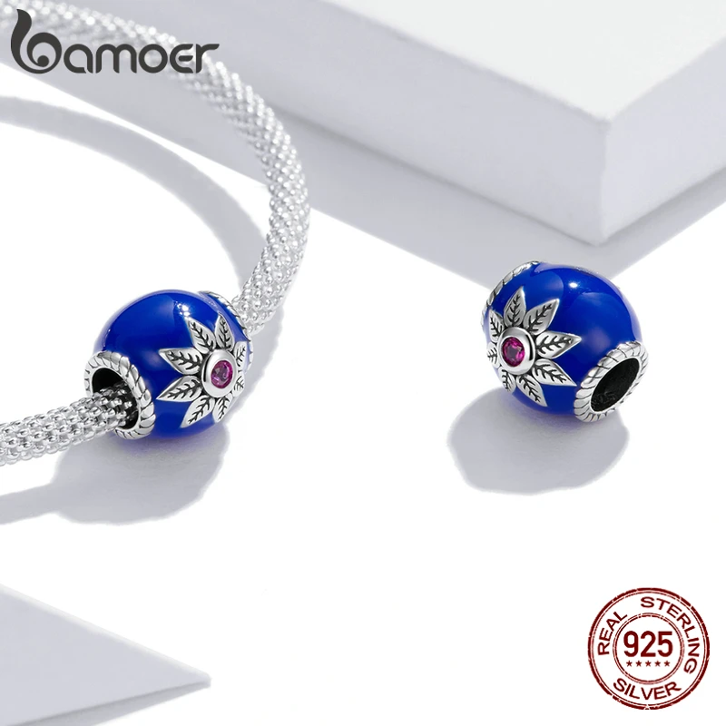 Серебристо-синяя эмалированная бусинка в форме лотоса bamoer, разноцветный волнующий слон, 925 пробы, серебряный шарм для оригинального браслета SCC1821