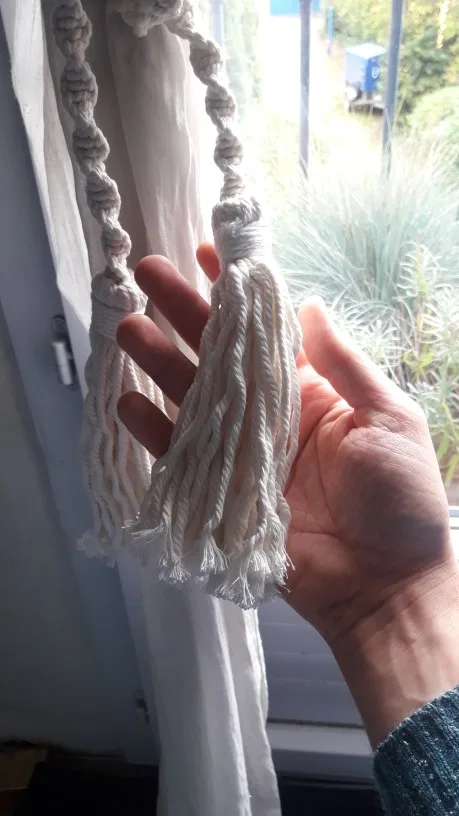 Доставка 10 дней из Китая во Францию. Хорошее качество. Материал настоящий хлопок. длина кисточек 20 см. длина шнура (без кисточек) 68 см. длина шнура вместе с косточками 1.08 м. доволен заказом! Рекомендую! #home #macrame #interior #decoration #deco