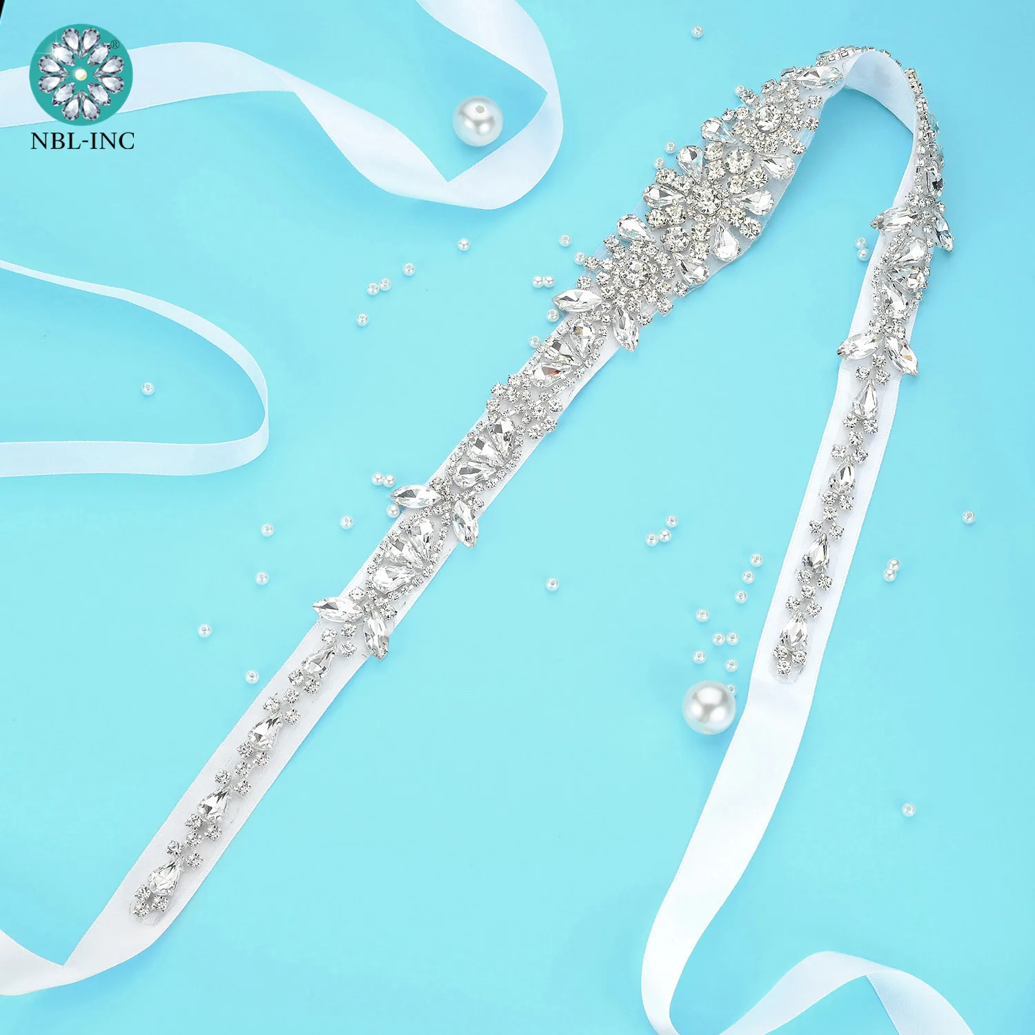 (1 шт.) Свадебный Серебряный Кристалл Стразы Жемчуг Аппликация Пояс...