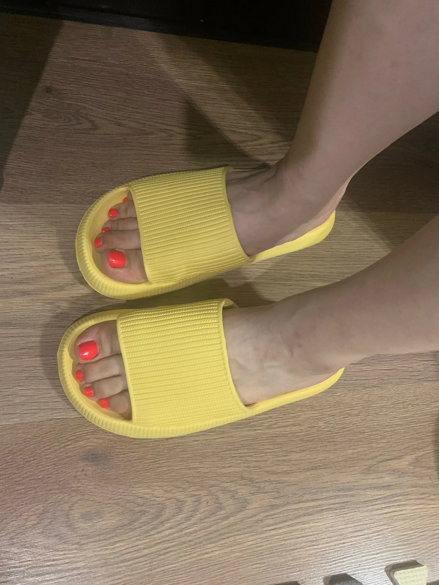 Тапочки визуально абсолютно как на фото, я ношу размер 36, но 36-37 на меня оказались и велики и широки. Качество пластика - мягкие и удобные, но нога сразу становится влажной