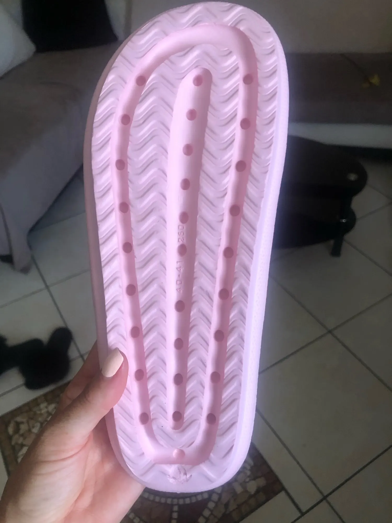 Класні тапочки. На 37 розмір підійшли 36-37. Єдине, коли вперше одягнула, натерли ногу. Думаю, потрапив пісок. Але загалом, чудові тапки.