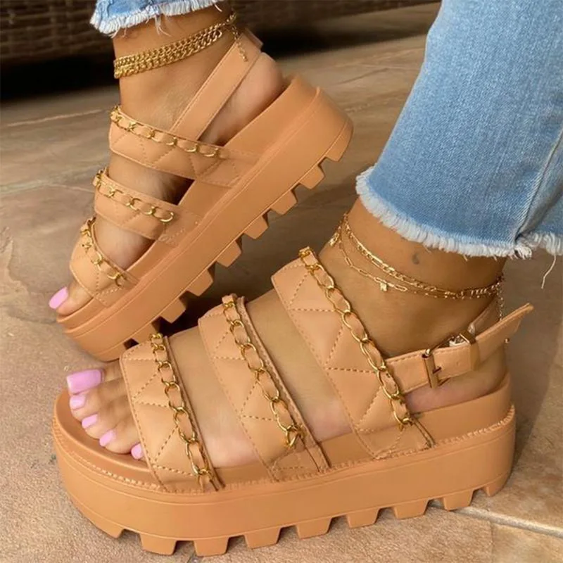 Женские босоножки на платформе, однотонные босоножки в римском стил...