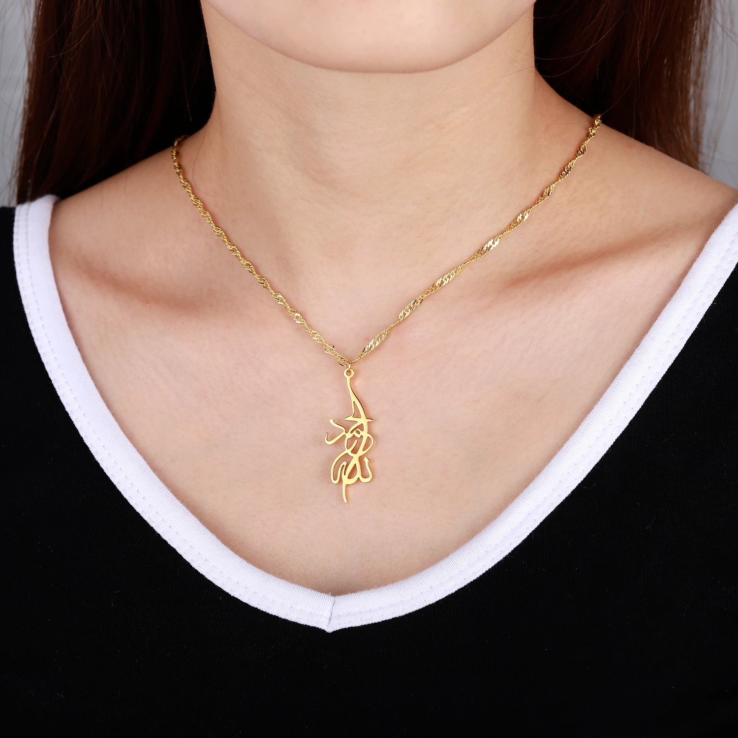 Арабское ожерелье на заказ, каллиграфическая подвеска Alhamdulillah, Корейская цепочка, золотая цепочка из нержавеющей стали для женщин, подарки Богу, Аллах, Коран