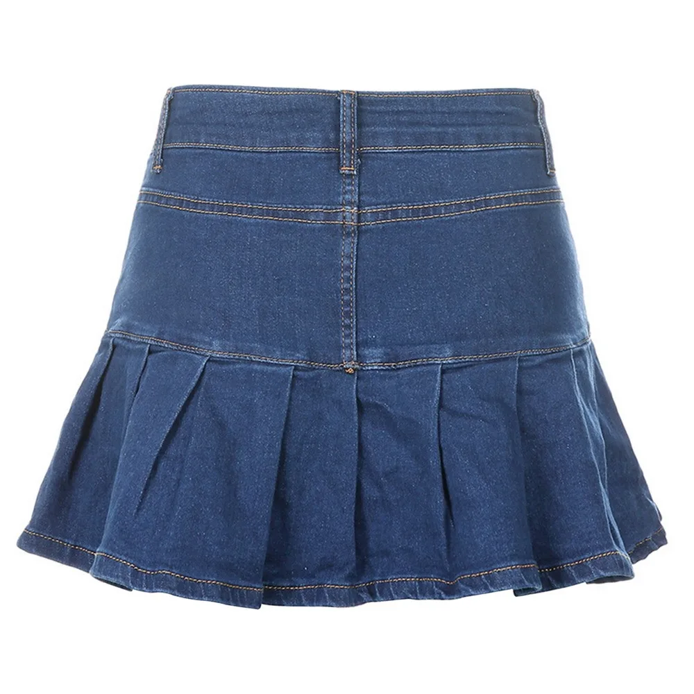 Юбка женская джинсовая плиссированная, винтажная модная готическая Черная с завышенной талией, с карманами и оборками, в Корейском стиле, y2k, на лето