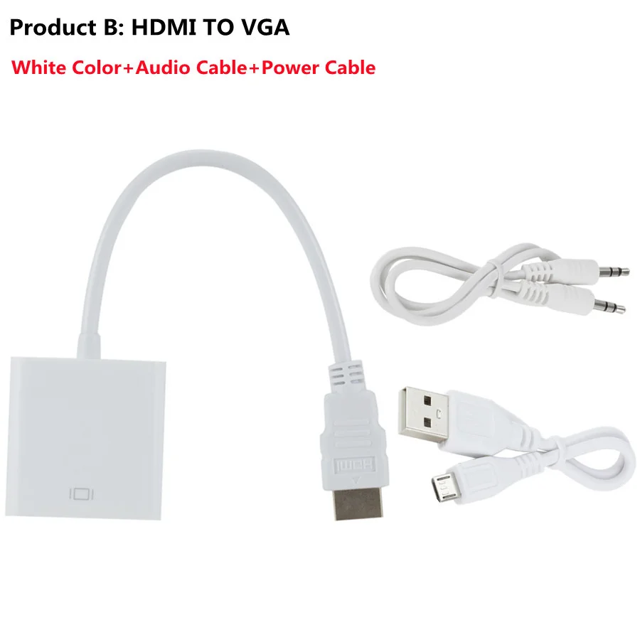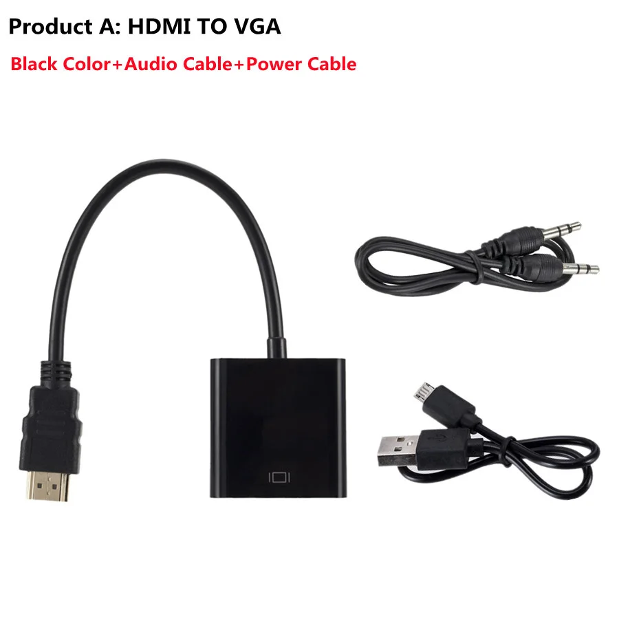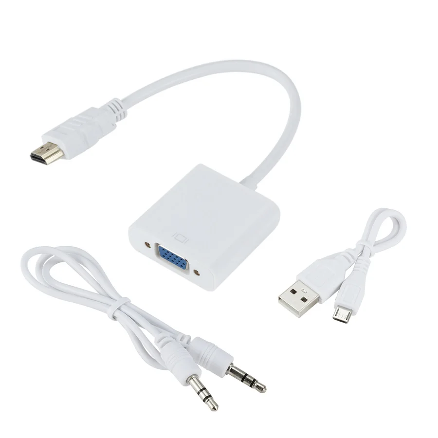 Видеоадаптер HDMI (штекер)VGA (разъем), HD 1080p, с аудиовыходом, для ПК, ноутбуков, медиаплееров, компьютеров, дисплеев, проекторов