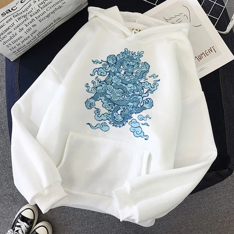 Женская толстовка с капюшоном и принтом дракона, в стиле Харадзюку