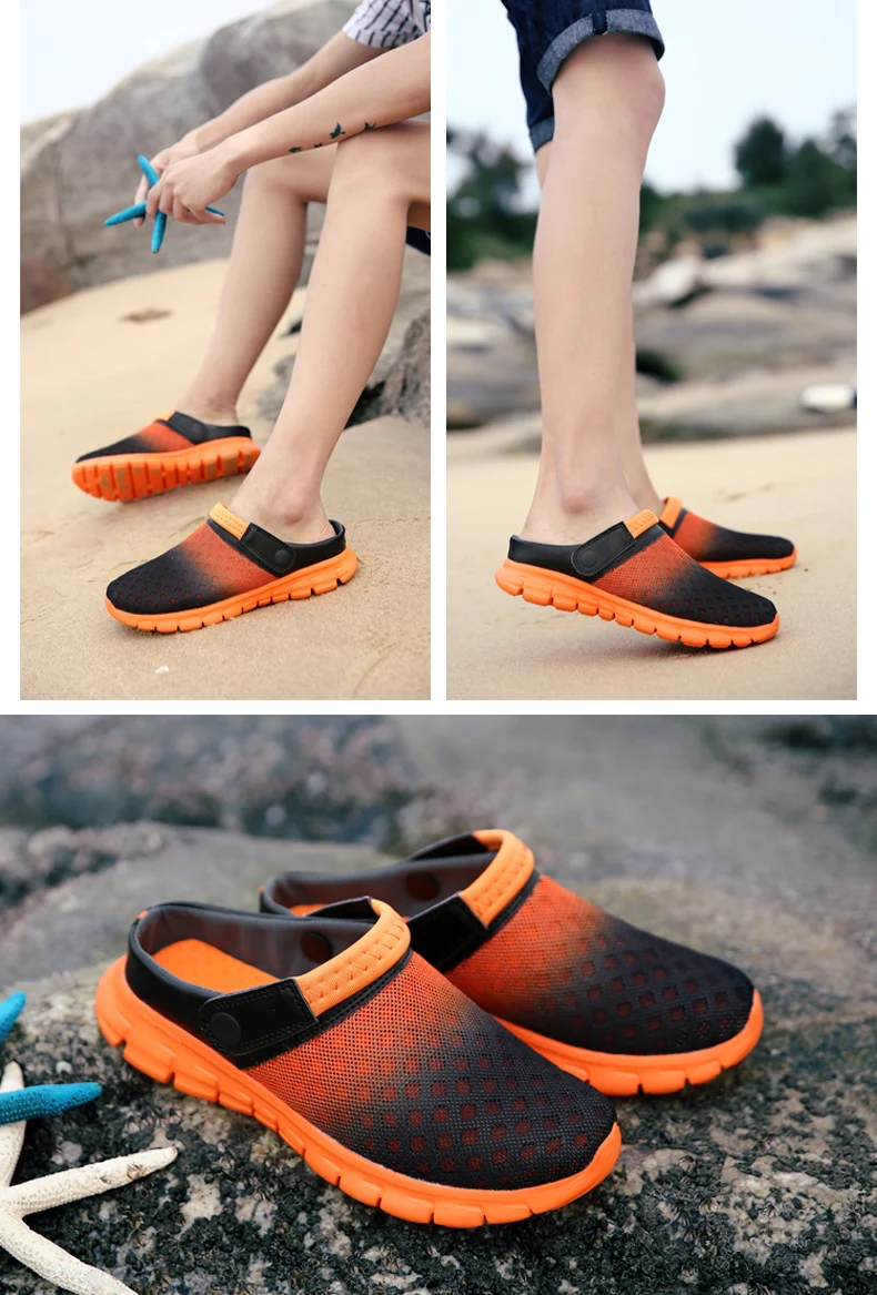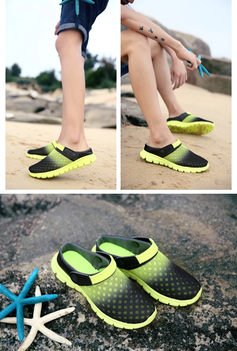 2021 Новая мужская женская летняя обувь из сетчатого материала дышащие мягкие пляжные сланцы; Однотонные Тапочки для ванной, на плоской подошве больших размеры 3646