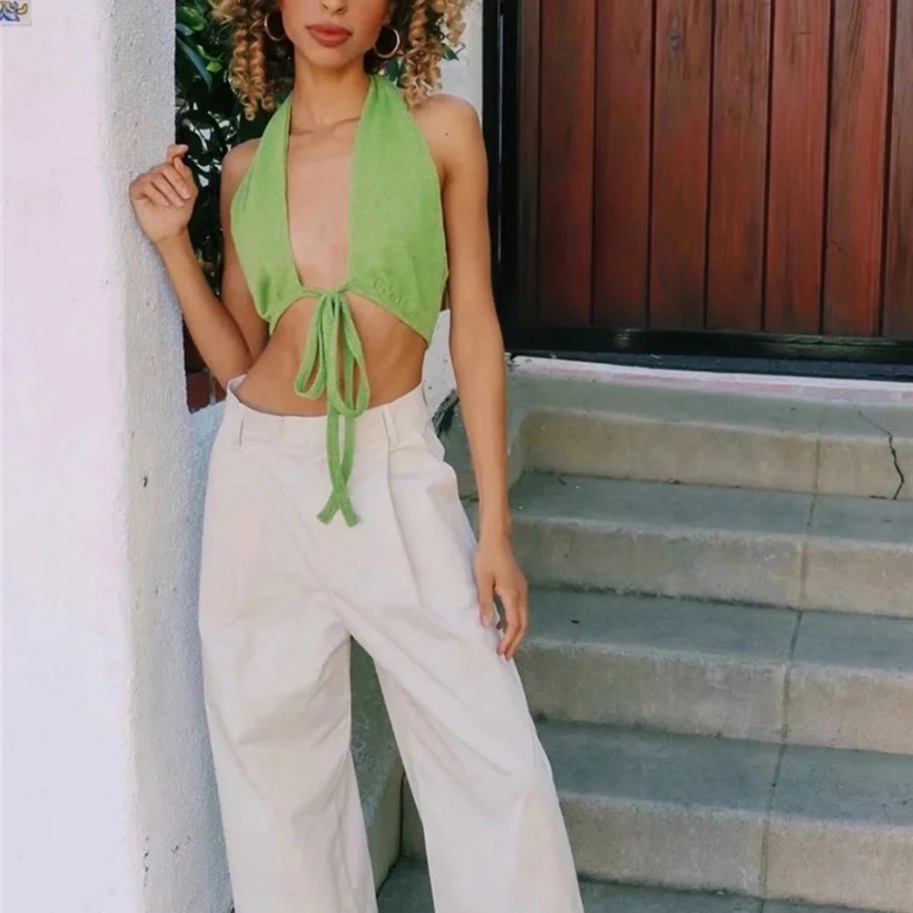 type2Top Fashion Solid Vest Summer Sexy Halter