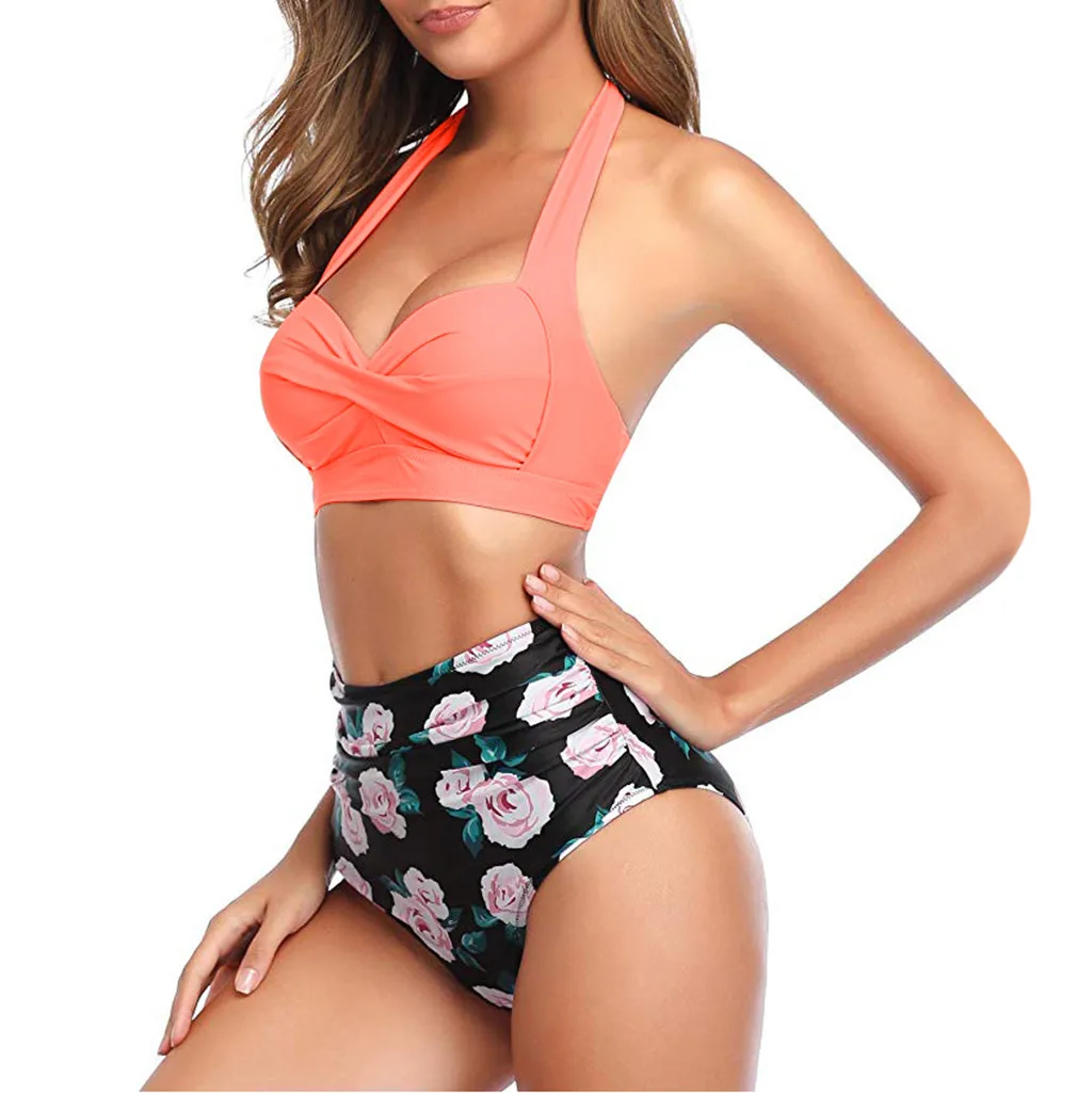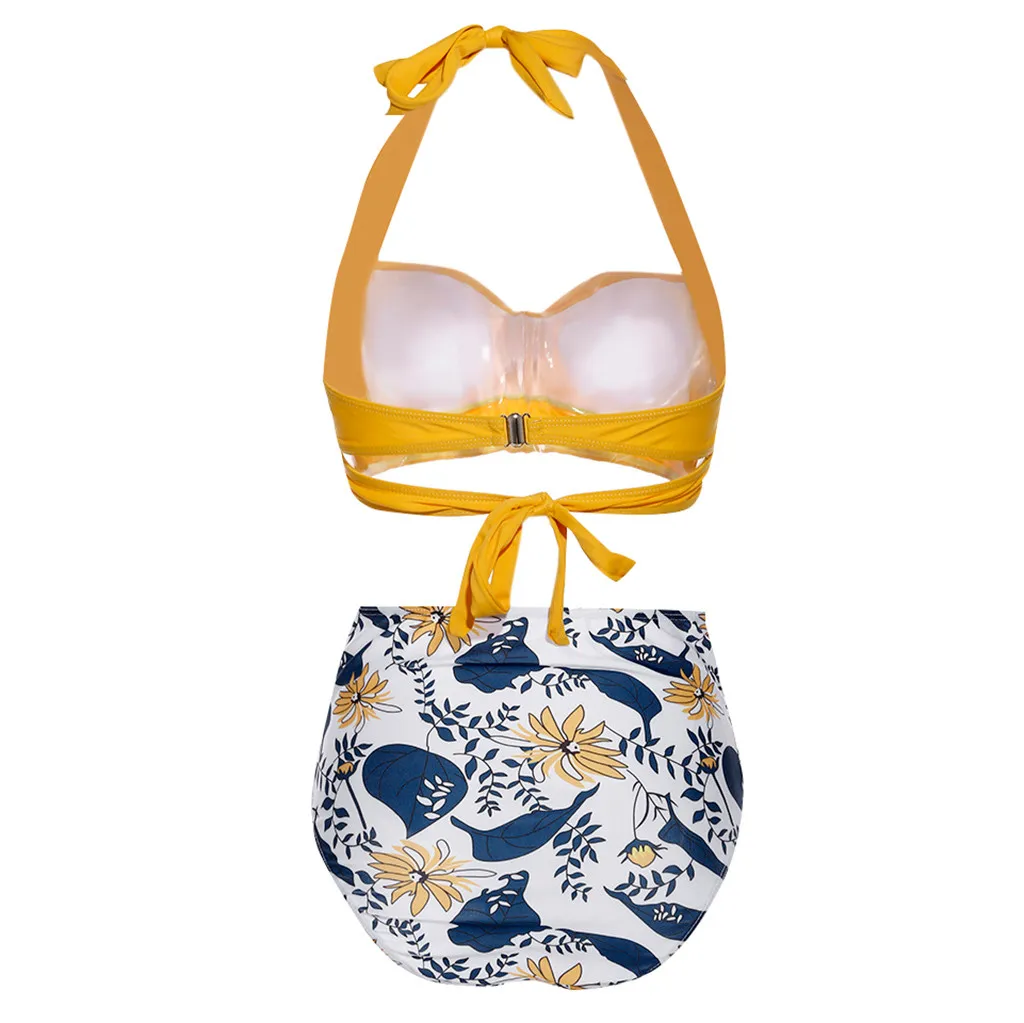 Женский винтажный купальник, комплект бикини с высокой талией и принтом