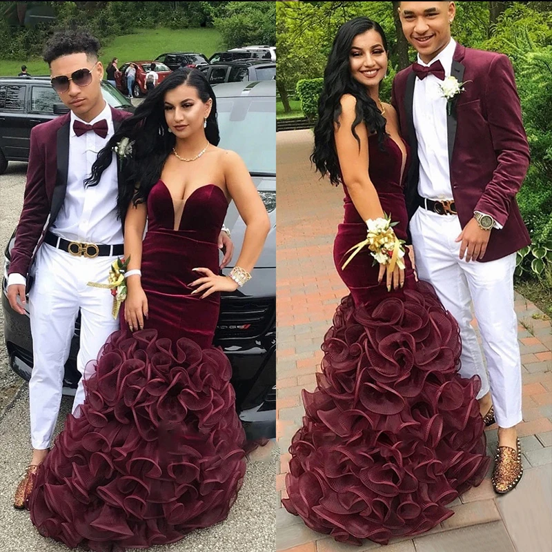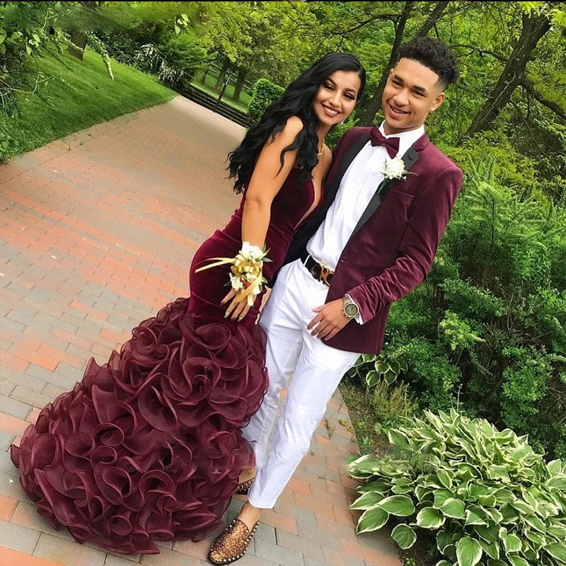 Женское велюровое платье-русалка, Бордовое платье до пола из органзы на молнии с оборками, Привлекательное платье большого размера для выпускного вечера