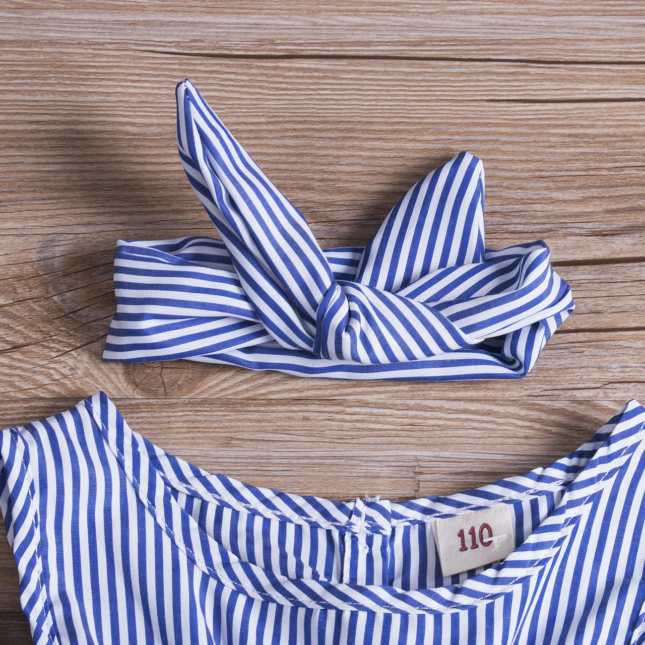 Модное Полосатое платье без рукавов для маленьких девочек и повязка на голову --- наше платье имеет свежий стиль, который понравится вашим маленьким! Подол юбки свободный трапециевидный стиль, демонстрирующий живой, милый и приятный, мягкий и дышащий, делает ваших маленьких девочек такими милыми и очаровательными, как настоящую принцессу. Таблица размеров: Размер (см) 90 Длина: 52 Бюст: 64 Возраст: 1-2 года 100 Длина: 55 Бюст: 66 Возраст: От 2 до 3 лет 110 Длина: 58 Бюст: 70 Возраст: От 3 до 4 лет 120 Длина: 61 Бюст: 74 Возраст: От 4 до 5 лет 130 Длина: 64 Бюст: 78 Возраст: От 5 до 6 лет Размер (дюйм) 90 Длина: 20,47 Бюст: 25,2 Возраст: 1-2 года 100 Длина: 21,65 Бюст: 25,98 Возраст: От 2 до 3 лет 110 Длина: 22,83 Бюст: 27,56 Возраст: От 3 до 4 лет 120 Длина: 24,02 Бюст: 29,13 Возраст: От 4 до 5 лет 130 Длина: 25,2 Бюст: 30,71 Возраст: От 5 до 6 лет Спецификация: Материал: смесь хлопка Стиль: милый Узор: в полоску Цвет: синий Воротник: круглый вырез Применение: лето Популярный элемент: плиссе, пуговице Примечания: 1. Приведенные выше данные измеряются вручную с допустимой погрешностью в 1-3 см. 2. Из-за различных дисплеев и освещения могут быть ошибки в цветах. Пожалуйста, ознакомьтесь с фактическими товарами. Содержимое посылка 1 * платье, 1 * повязка на голову