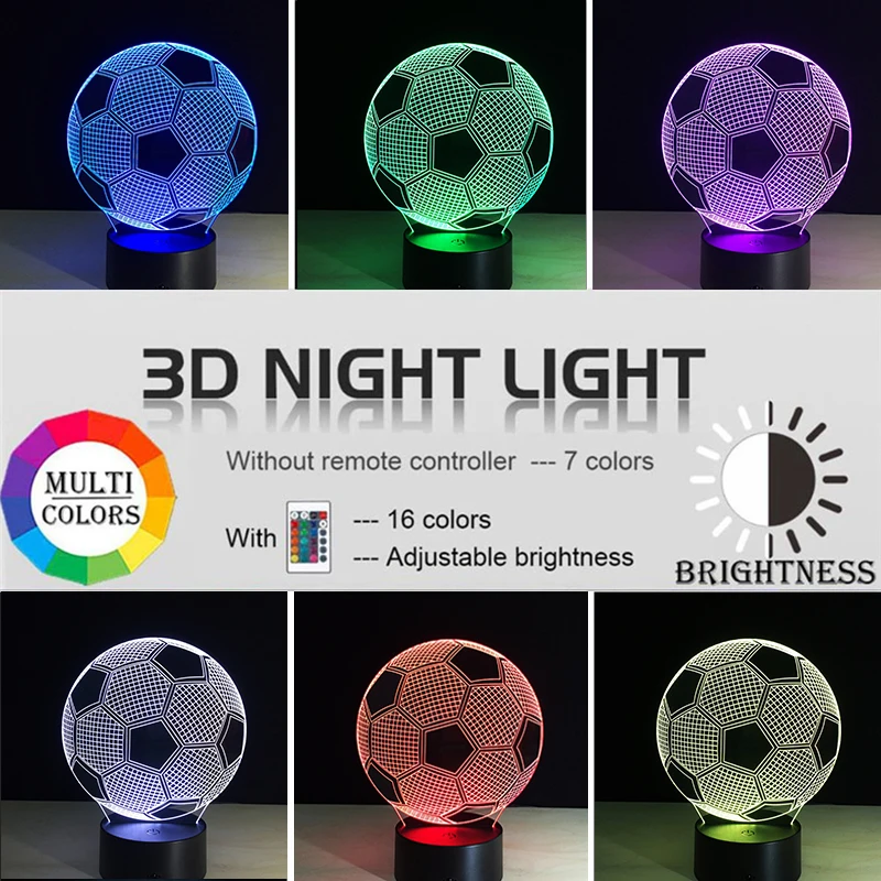 Тип товара: 3D светодиодный ночсветильник Основной Материал: АБС-пластик Материал светопроводной пластины: акрил Процесс: лазерная гравировка Режим питания: USB/батарея (батарея в комплект не входит) Входное напряжение: 5 В постоянного тока Источник светильник светодиодный Цвет светильник: 7 цветов или 16 цветов Светильник вой узор: 3D стереоскопический рисунок (как показано на рисунке) режим переключения: сенсорный выключатель/сенсорный выключатель + пульт дистанционного управления Напряжение продукта: 5 В Мощность продукта: 3 Вт