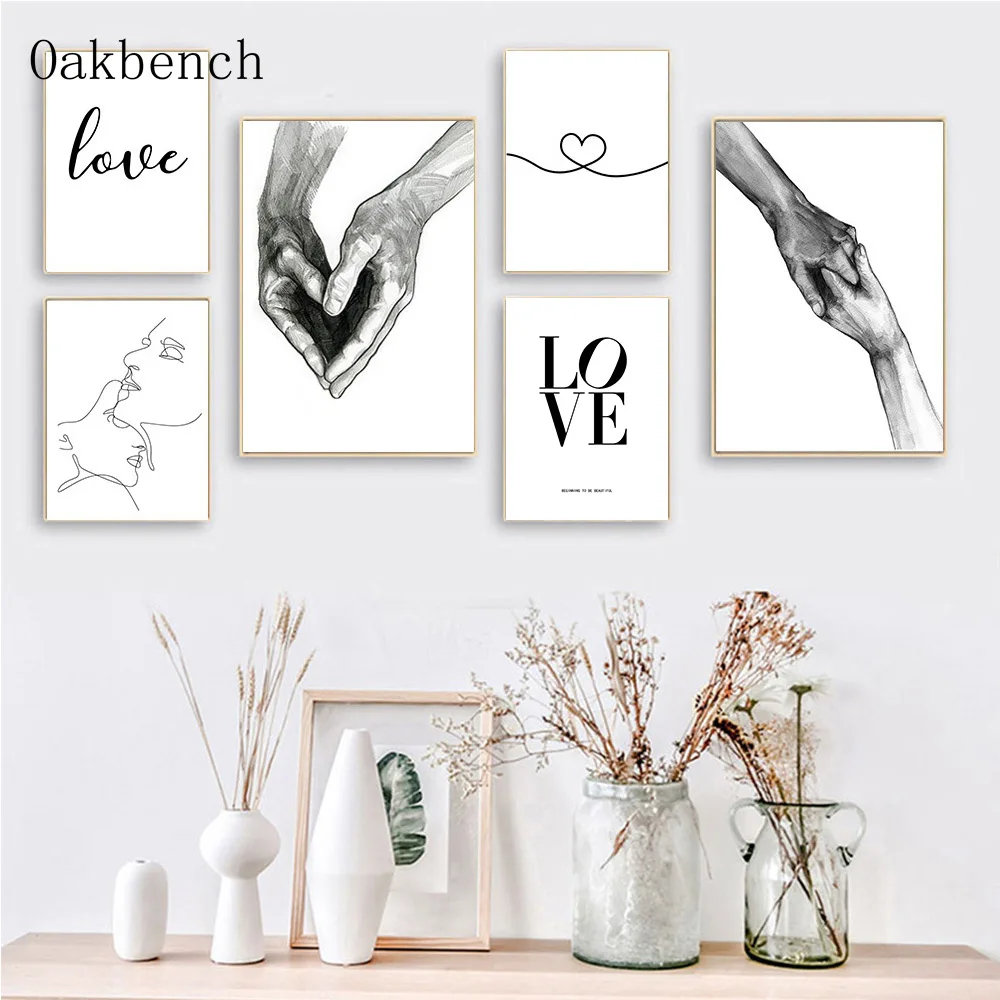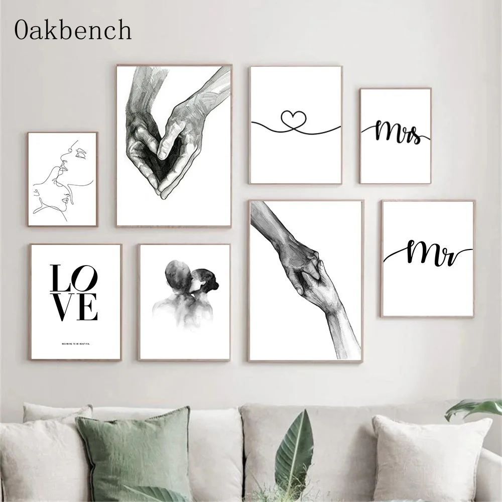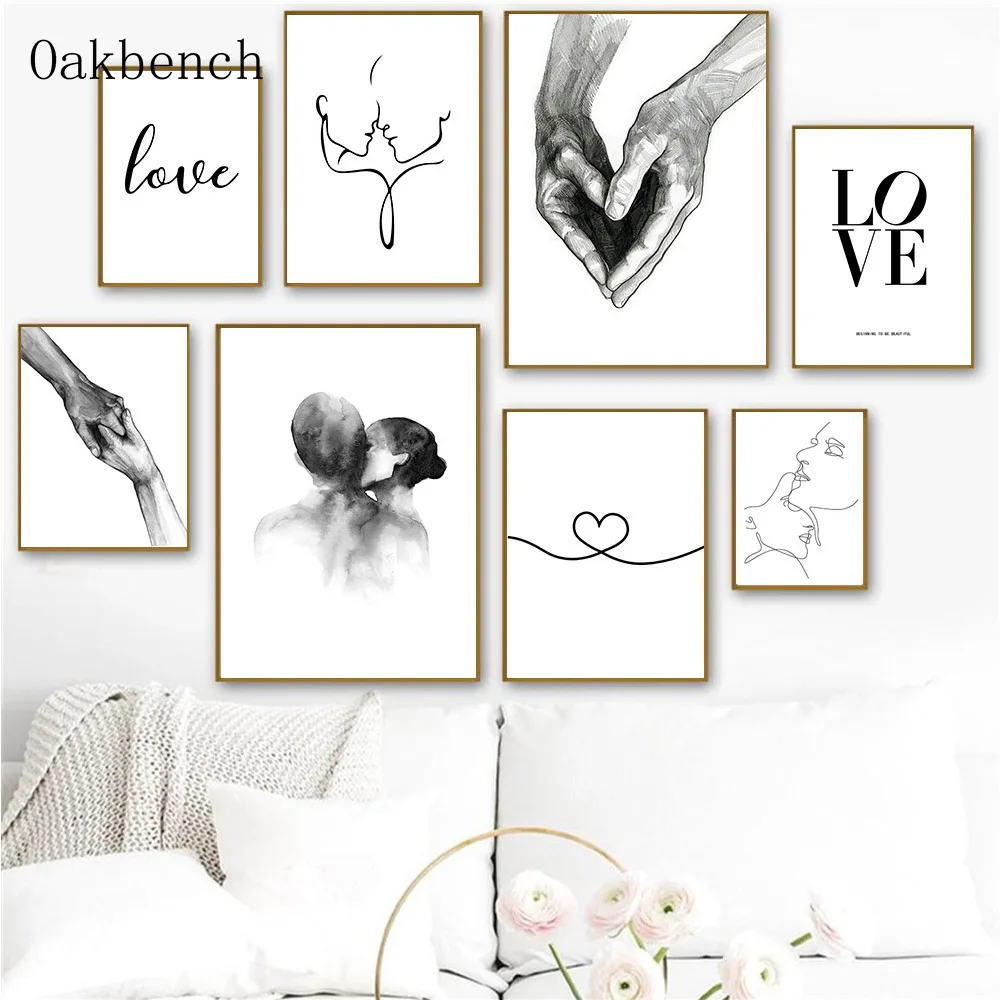 Поцелуй эскиз ручная любовь абстрактная линия человек женщина Искусство Холст Живопись скандинавские постеры и принты настенная живопись гостиная домашний декор
