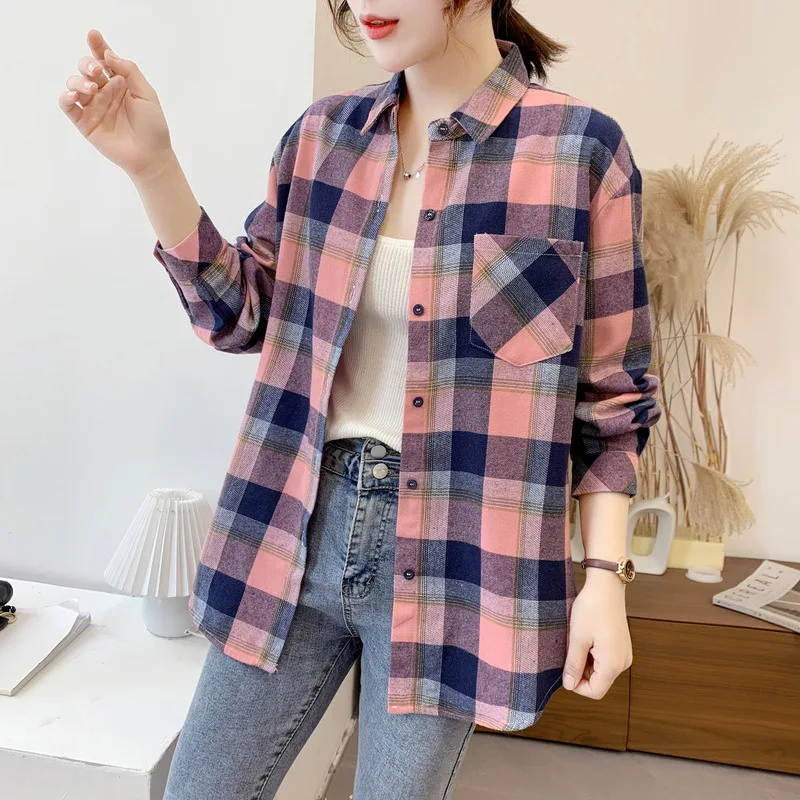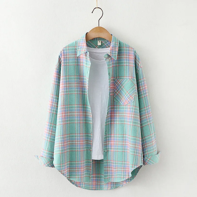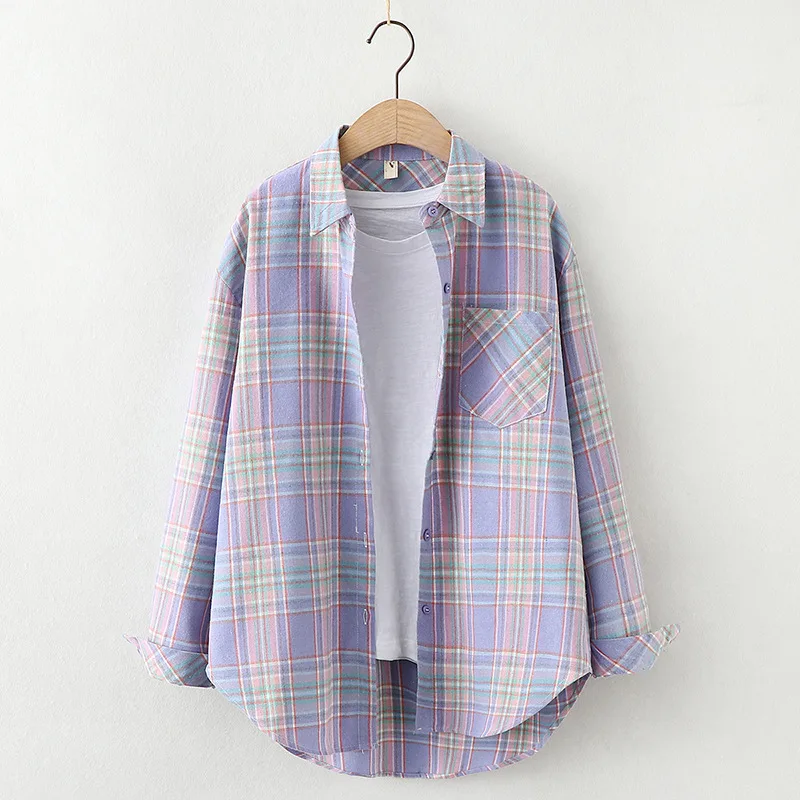 2021 новые женские блузки отложной воротник рубашки в клетку с длинным рукавом Свободная верхняя одежда в стиле Харадзюку Женская Повседневная рубашка в уличном стиле